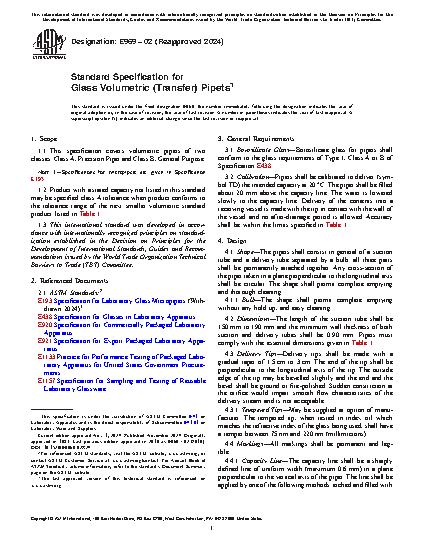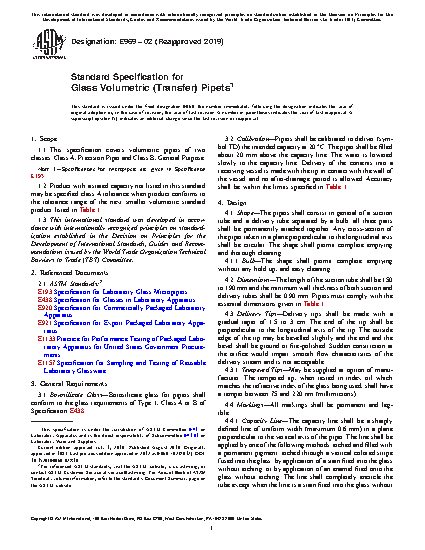 1.1 This specification covers volumetric pipets of two classes. Class A, Precision Pipet and Class B, General Purpose. Specifications for micropipets are given in Specification E 193.