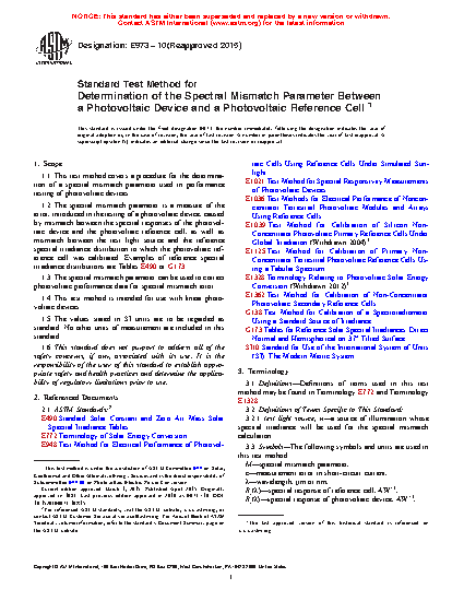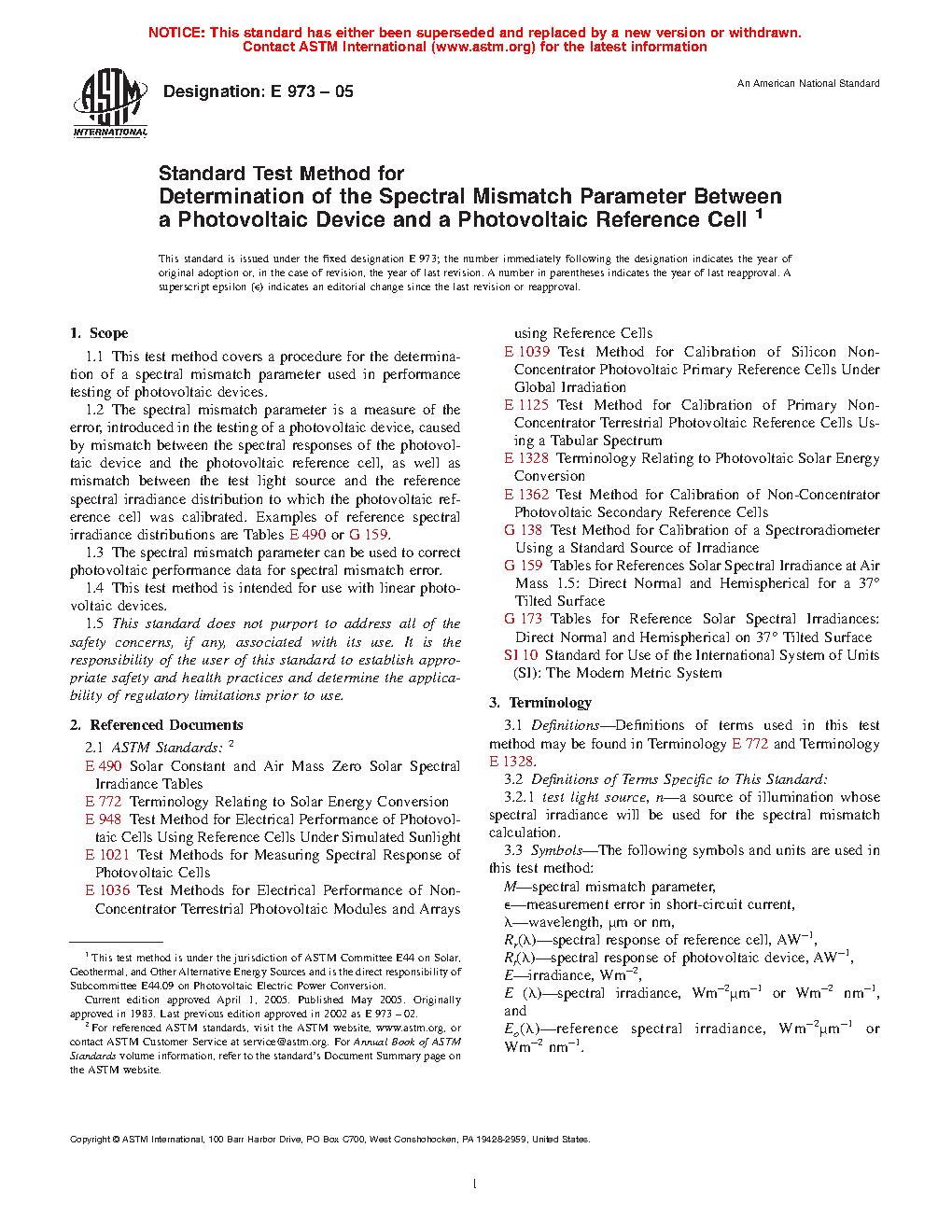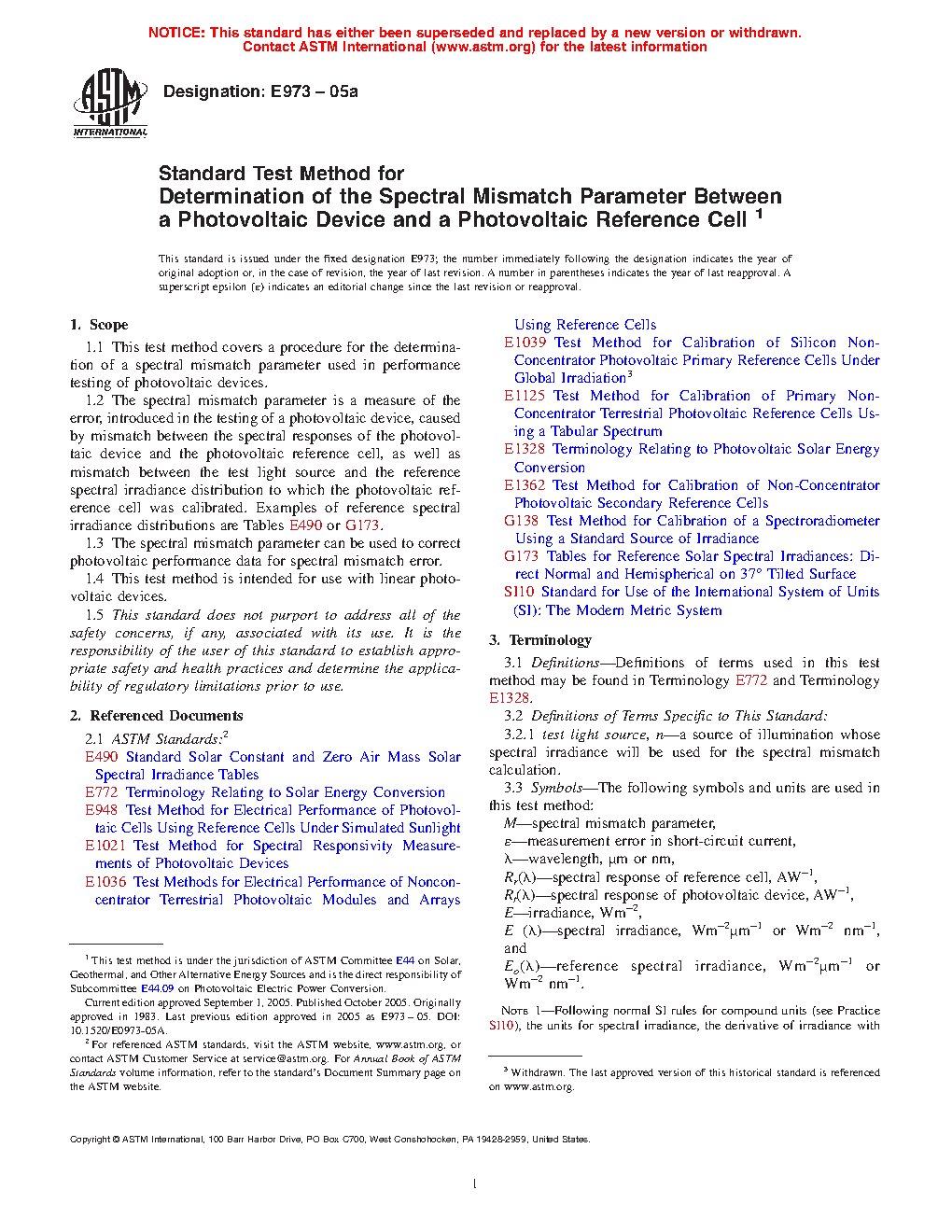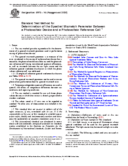 5.2.2 Error due to spectral mismatch is corrected by multiplying a reference cell’s measured short-circuit current by M , a technique used in Test Methods E948 and E1036.