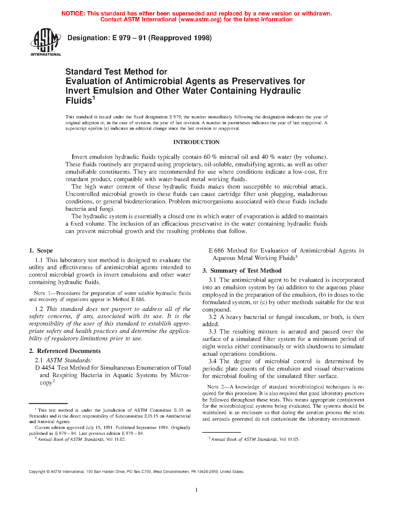 5.1 This procedure is designed to determine the effectiveness of antimicrobial agents intended for microbial control in invert emulsions and other water containing hydraulic fluids.