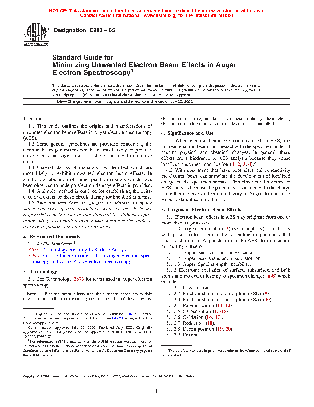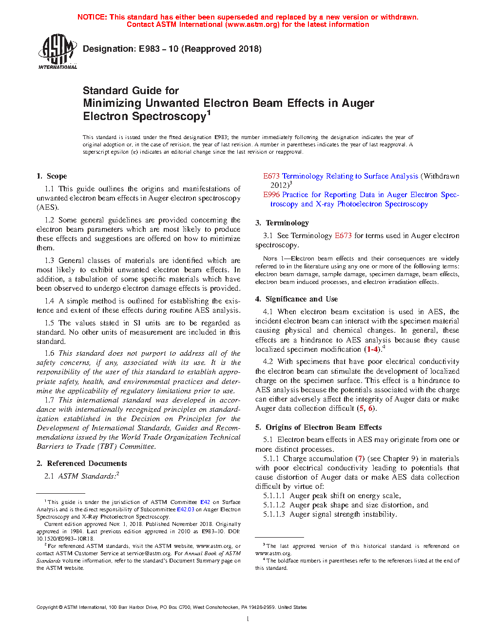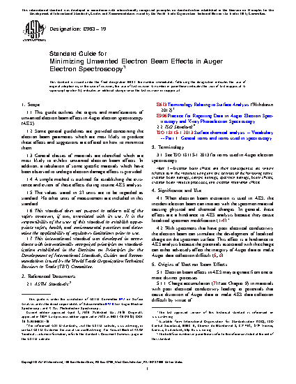 1.1 This guide outlines the origins and manifestations of unwanted electron beam effects in Auger electron spectroscopy (AES).