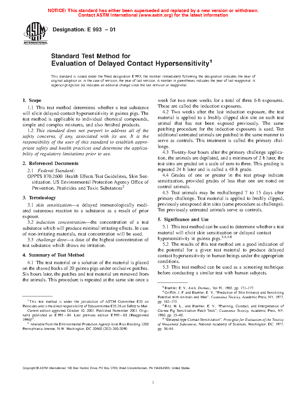 Standard Test Method for Evaluation of Delayed Contact Hypersensitivity