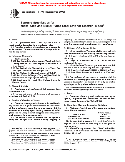 Standard Specification for Nickel-Clad and Nickel-Plated Steel Strip for Electron Tubes