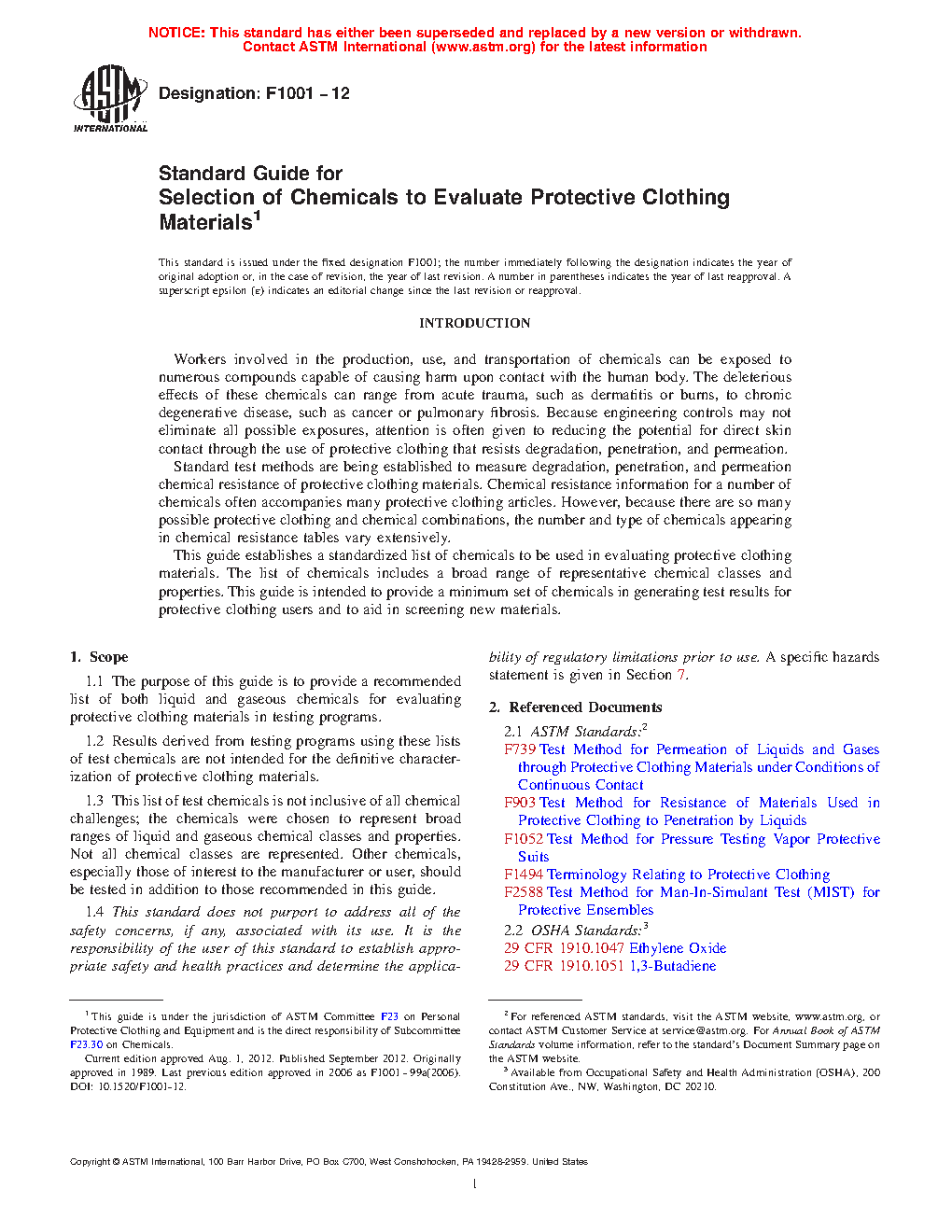 1.2 Results derived from testing programs using these lists of test chemicals are not intended for the definitive characterization of protective clothing materials.