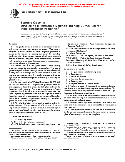 1.3 Currently the Code of Federal Regulation 40 CFR 112, 40 CFR 265, and 49 CFR 173 specify that producers, handlers, and shippers of hazardous materials shall plan and train for hazardous spill response. The broad interpretation of these regulations could include the requirement to train state and local response organizations who may be required to handle hazardous materials in an emergency spill situation. Regardless of the above regulatory requirements, training is essential to a proper response in an emergency.