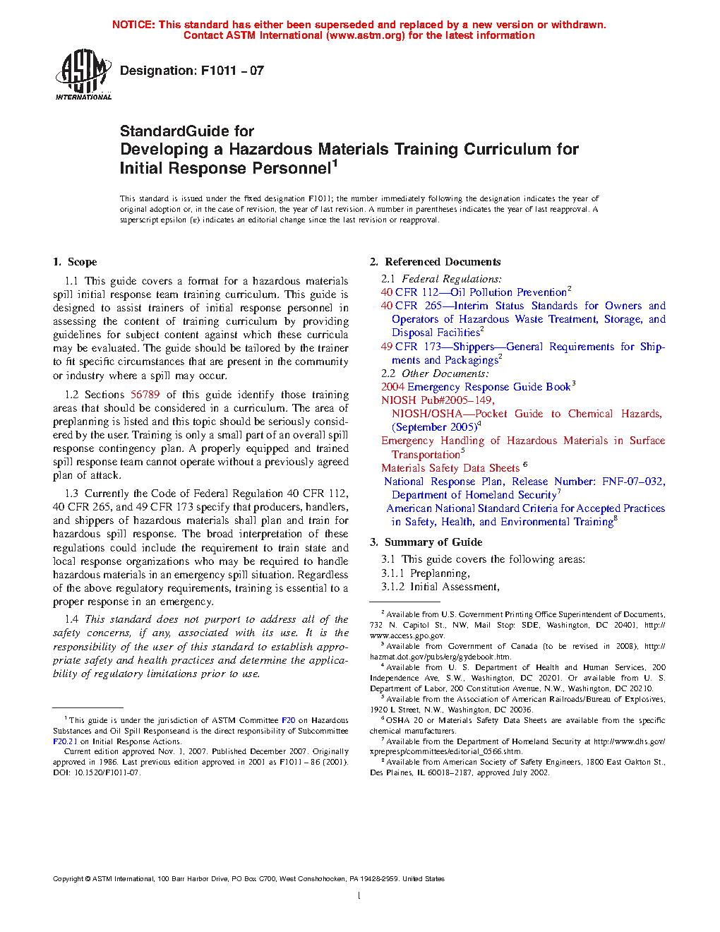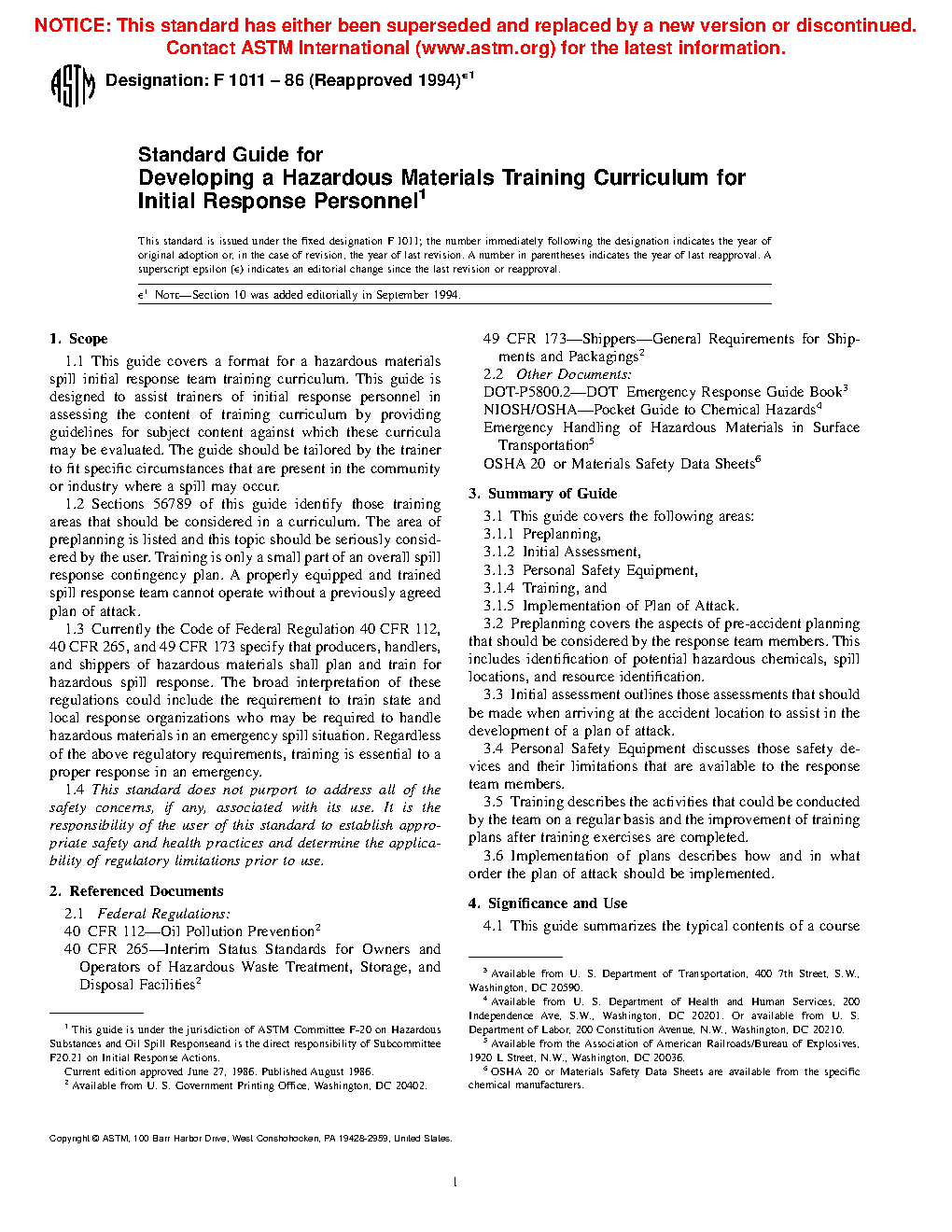 1.3 Currently the Code of Federal Regulation 40 CFR 112, 40 CFR 265, and 49 CFR 173 specify that producers, handlers, and shippers of hazardous materials shall plan and train for hazardous spill response. The broad interpretation of these regulations could include the requirement to train state and local response organizations who may be required to handle hazardous materials in an emergency spill situation. Regardless of the above regulatory requirements, training is essential to a proper response in an emergency.