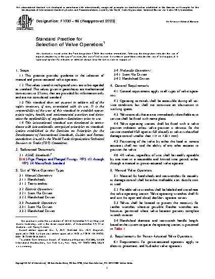 1.1 This practice provides guidance in the selection of manual and power-actuated valve operators.