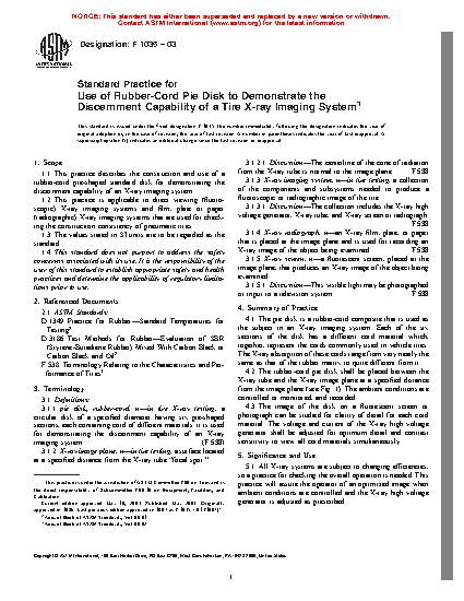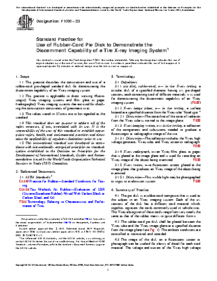 5.3 The rubber-cord pie disk can be used to compare the performances of X-ray systems in different laboratories. It can also be used in special cases to optimize system performance for a particular sector or cord-type, as may be required for examining a specific tire.