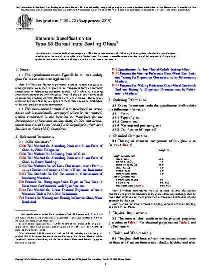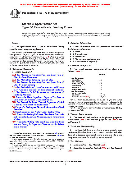 Note 1: This specification is primarily intended to consider glass as most generally used, that is, glass in its transparent form as normally encountered in fabricating electronic devices. X1.3 refers to a sealing alloy that is compatible with this glass. Type 58 glass in other forms such as powdered, crushed, sintered, fibrous, etc., are excluded. The requirements of this specification, as applied to these forms, must be established in the raw glass prior to its conversion.