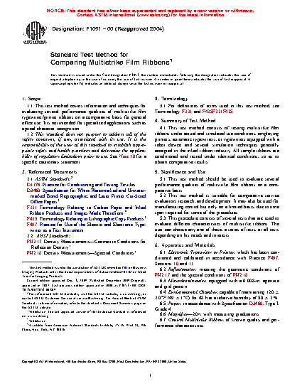 1.1 This test method covers information and techniques for evaluating several performance qualities of multistrike film typewriter/printer ribbons on a comparative basis for general office use. It is not intended for specialized applications such as optical character recognition.