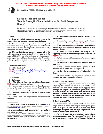 1.1 These test methods cover static laboratory tests of the strength of oil spill response boom under tensile loading.