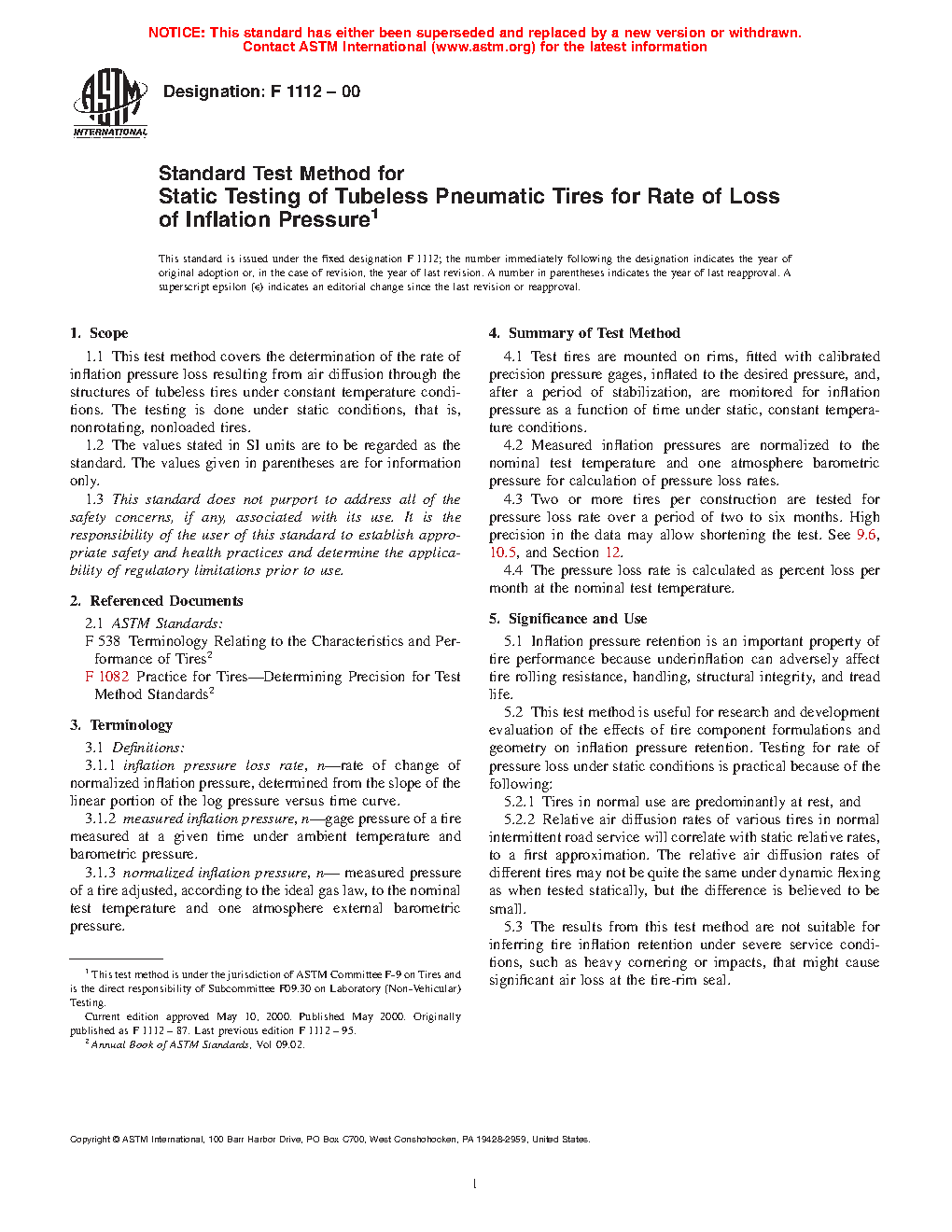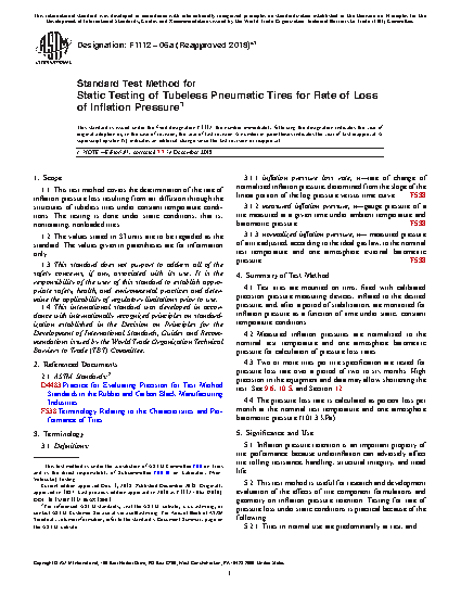 5.2 This test method is useful for research and development evaluation of the effects of tire component formulations and geometry on inflation pressure retention. Testing for rate of pressure loss under static conditions is practical because of the following: