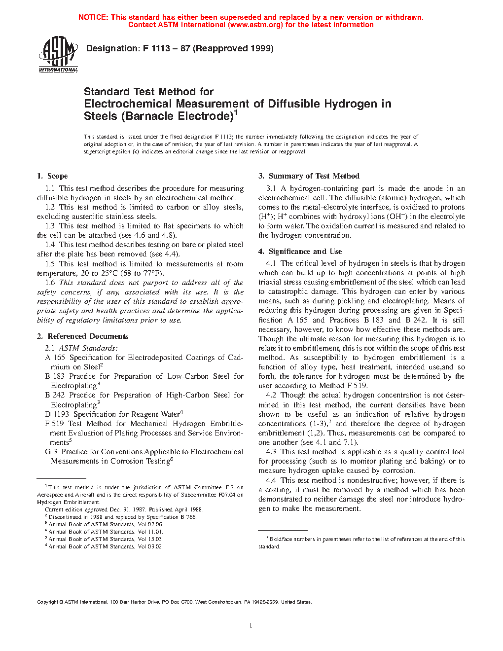 This test method is applicable as a quality control tool for processing (such as to monitor plating and baking) or to measure hydrogen uptake caused by corrosion.
