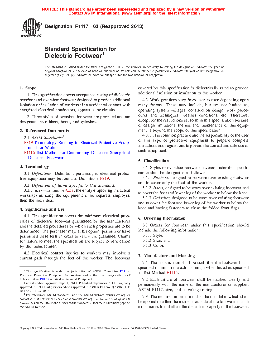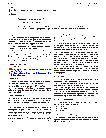 1.1 This specification covers acceptance testing of overshoe footwear designed to provide additional isolation or insulation of workers if in accidental contact with energized electrical conductors, apparatus, or circuits.