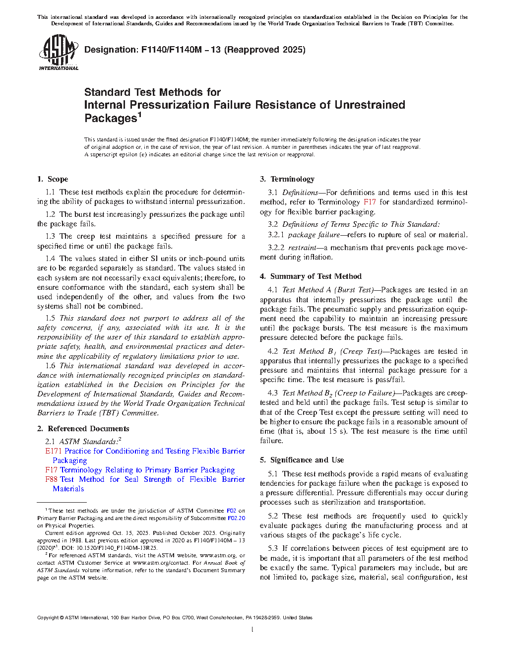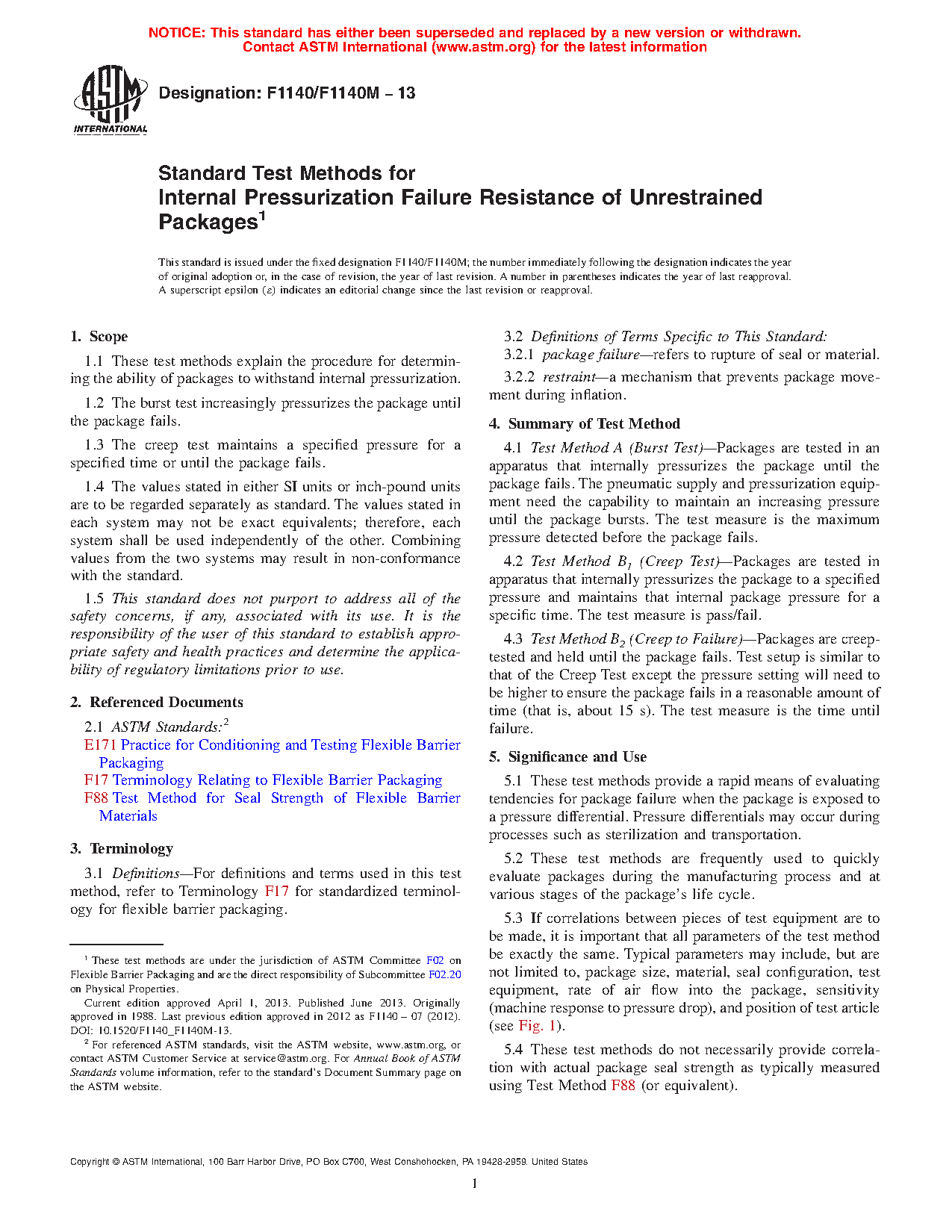 1.3 The creep test maintains a specified pressure for a specified time or until the package fails.
