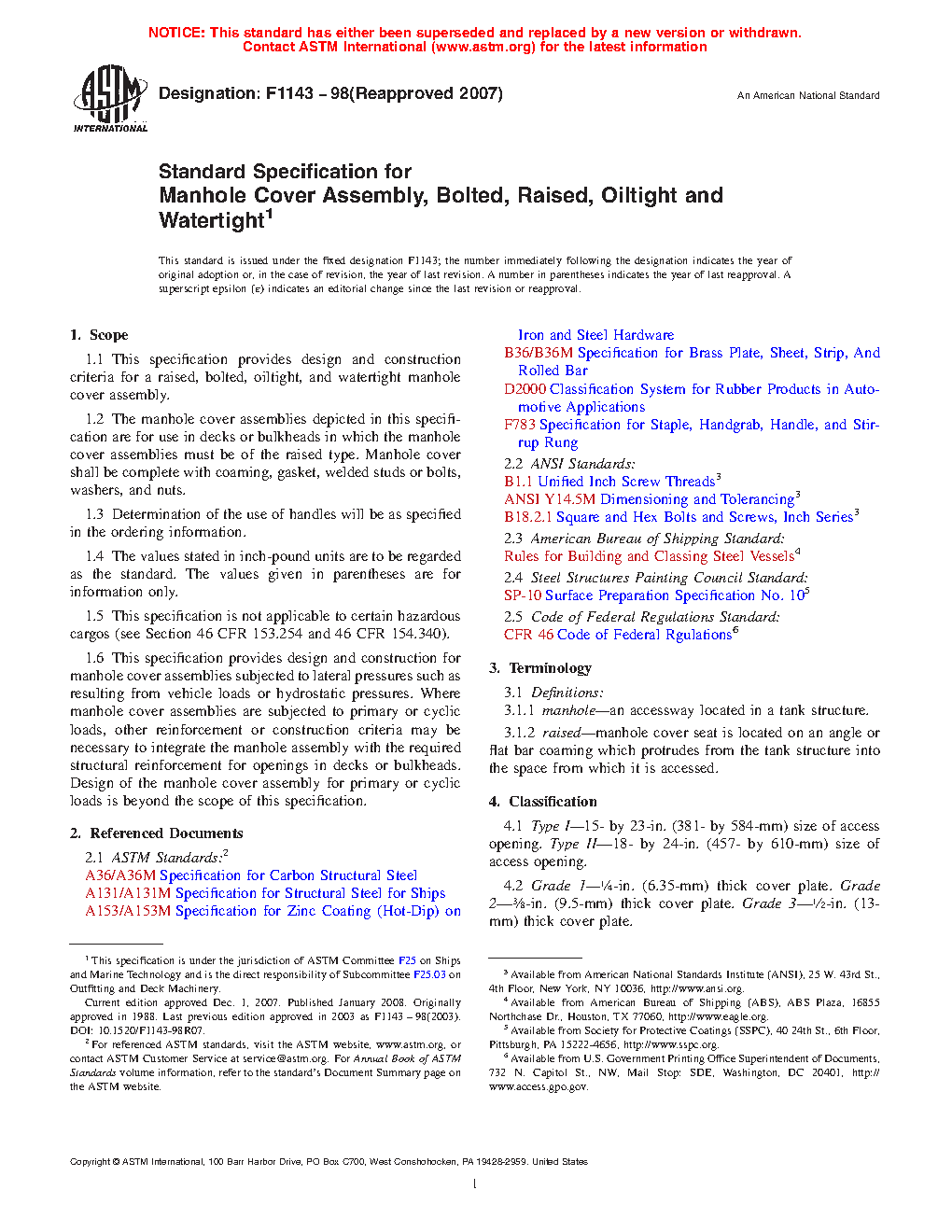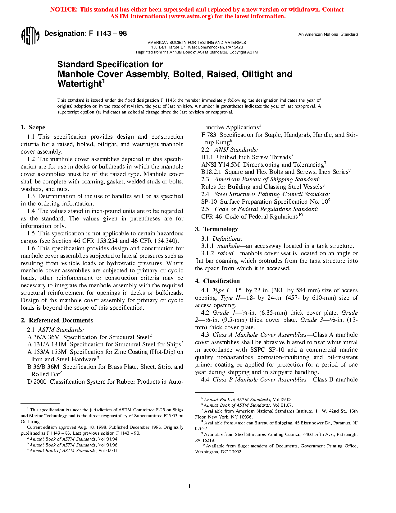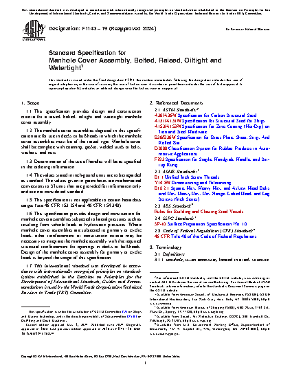 1.1 This specification provides design and construction criteria for a raised, bolted, oiltight, and watertight manhole cover assembly.