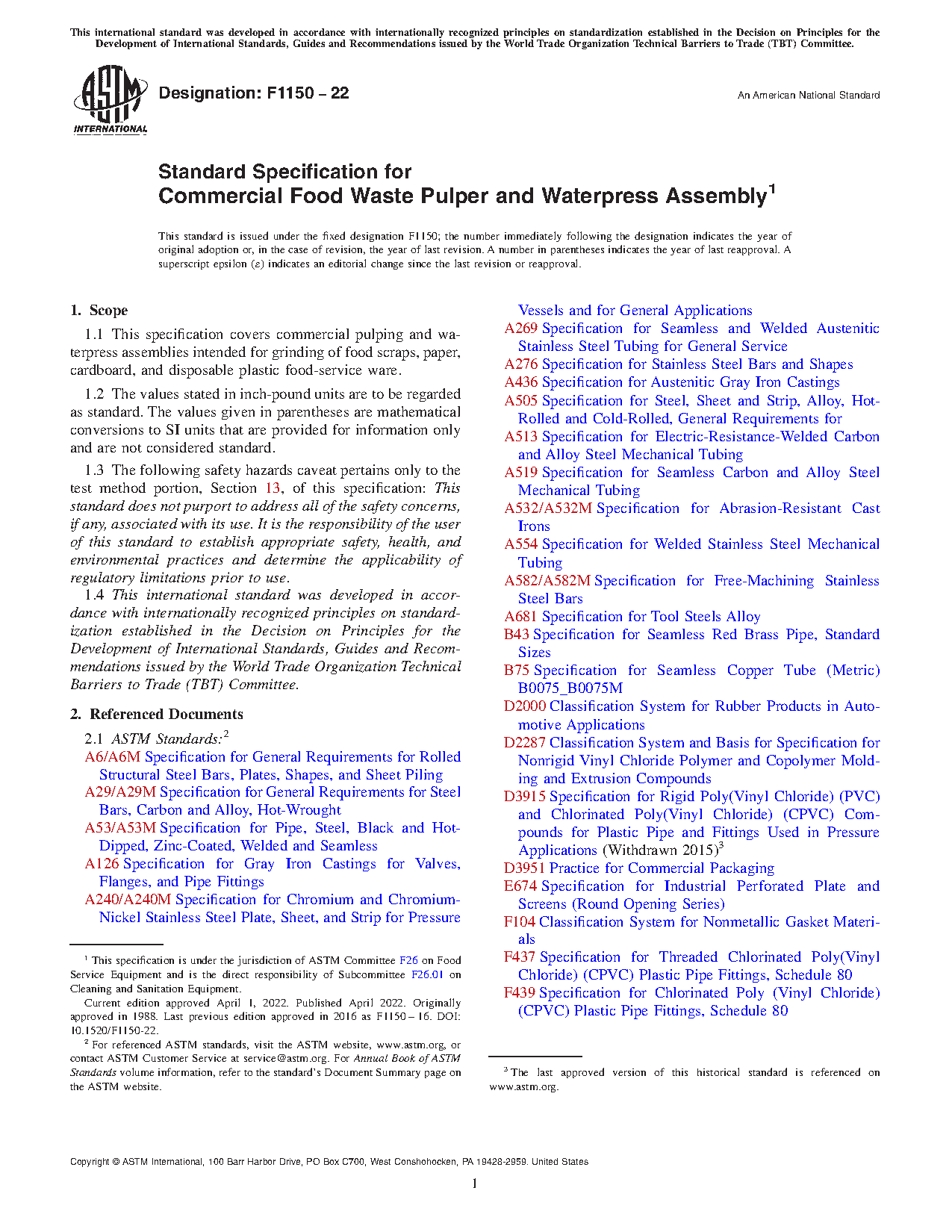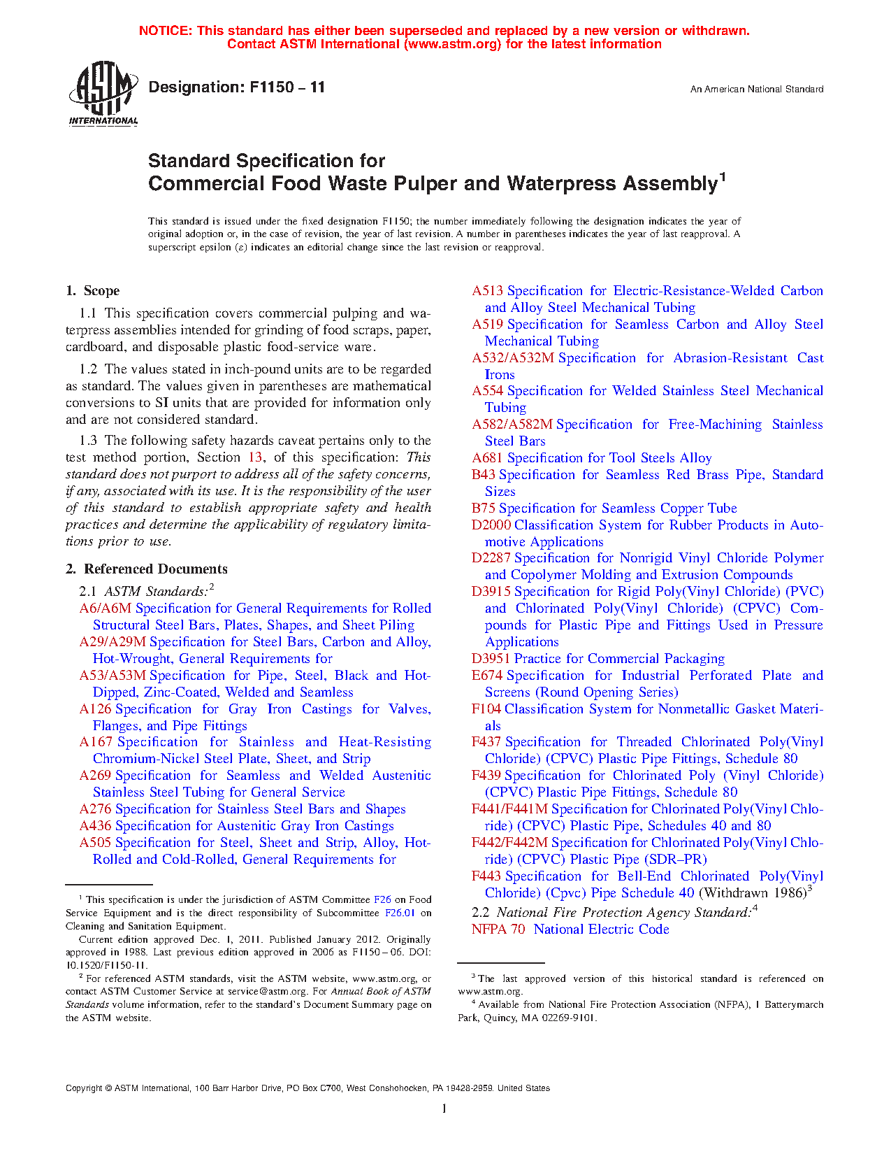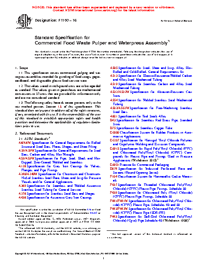 1.1 This specification covers commercial pulping and waterpress assemblies intended for grinding of food scraps, paper, cardboard, and disposable plastic food-service ware.
