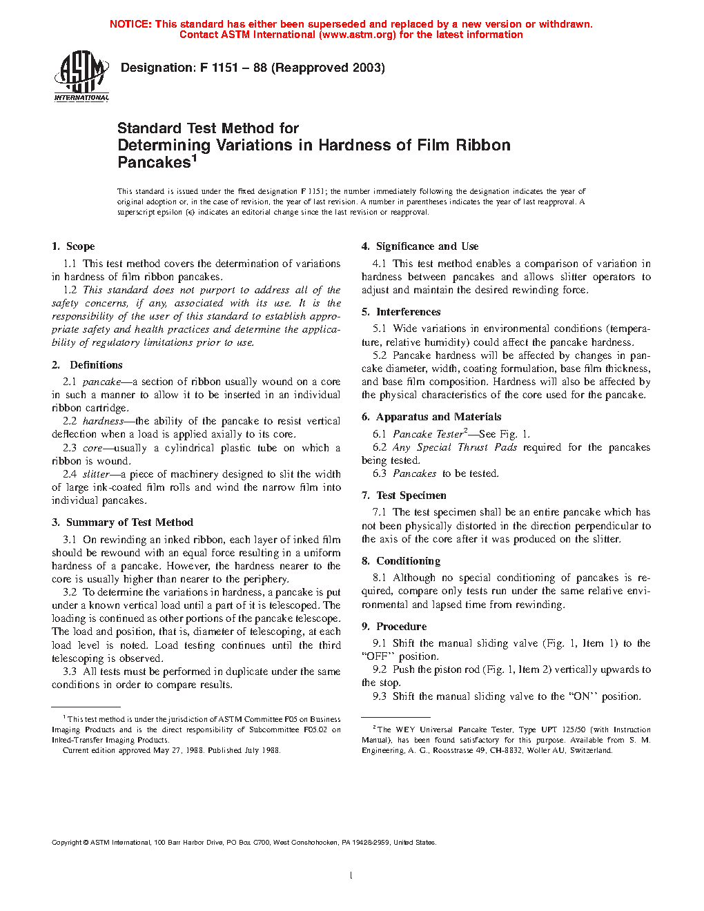 Standard Test Method for Determining Variations in Hardness of Film Ribbon Pancakes