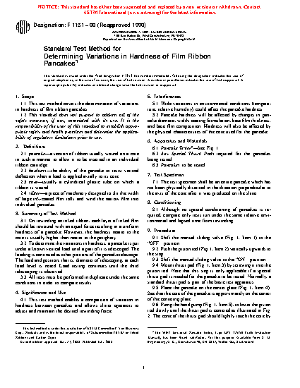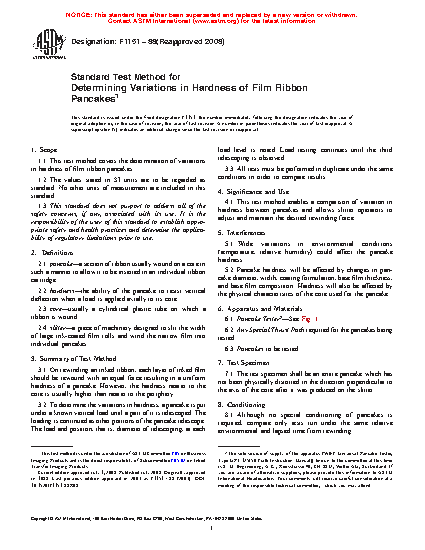 Standard Test Method for Determining Variations in Hardness of Film Ribbon Pancakes