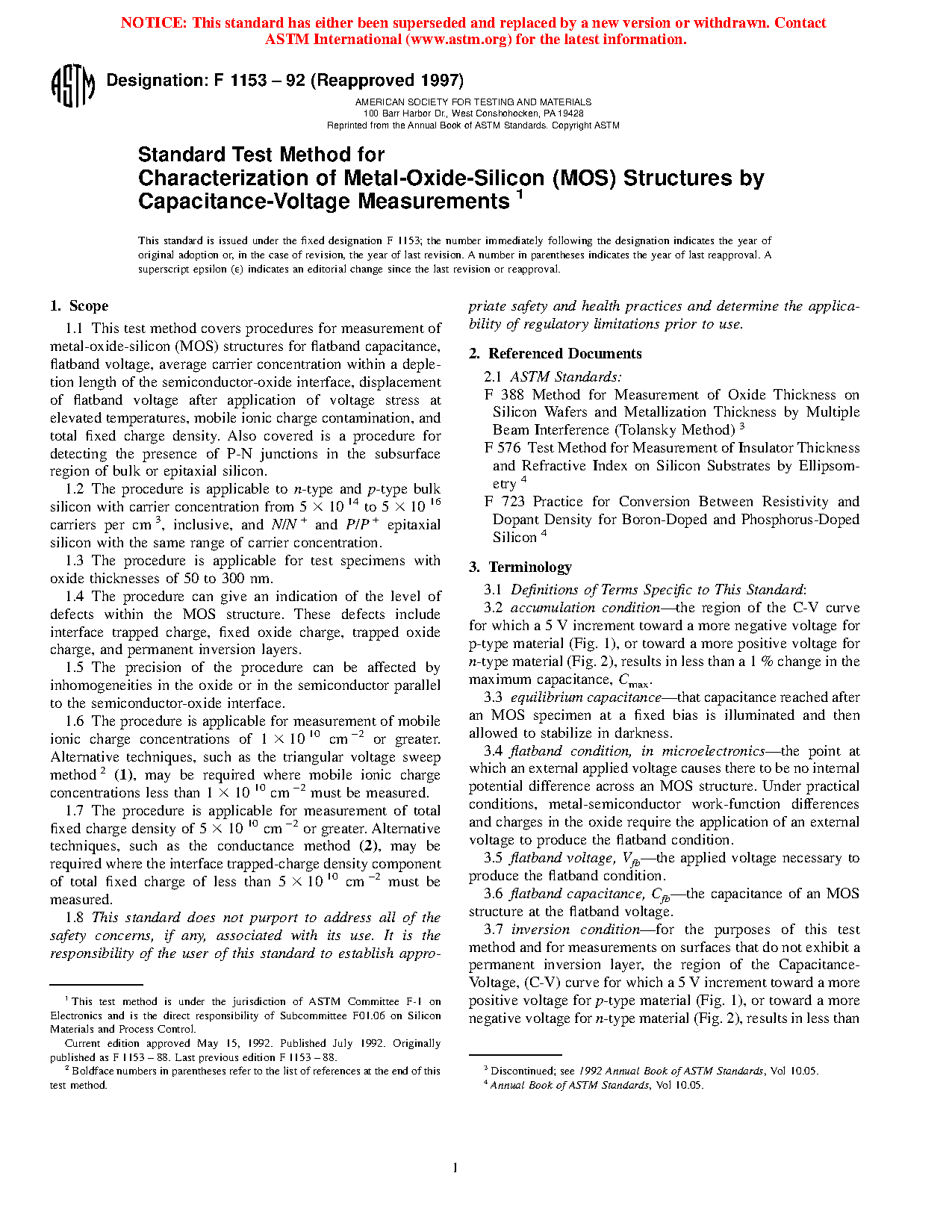 1.6 The procedure is applicable for measurement of mobile ionic charge concentrations of 1 x 1010 cm 2 or greater. Alternative techniques, such as the triangular voltage sweep method (1), may be required where mobile ionic charge concentrations less than 1 x 10 10 cm 2 must be measured.
