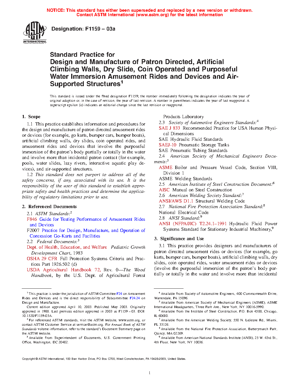 Standard Practice for the Design and Manufacture of Amusement Rides and Devices