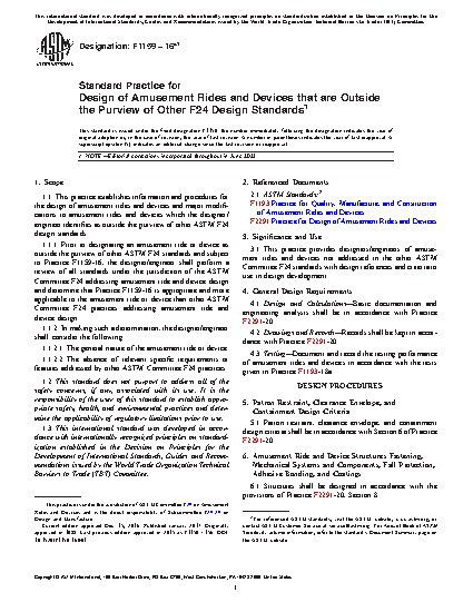 1.1 This practice establishes information and procedures for the design and manufacture of amusement rides and devices.