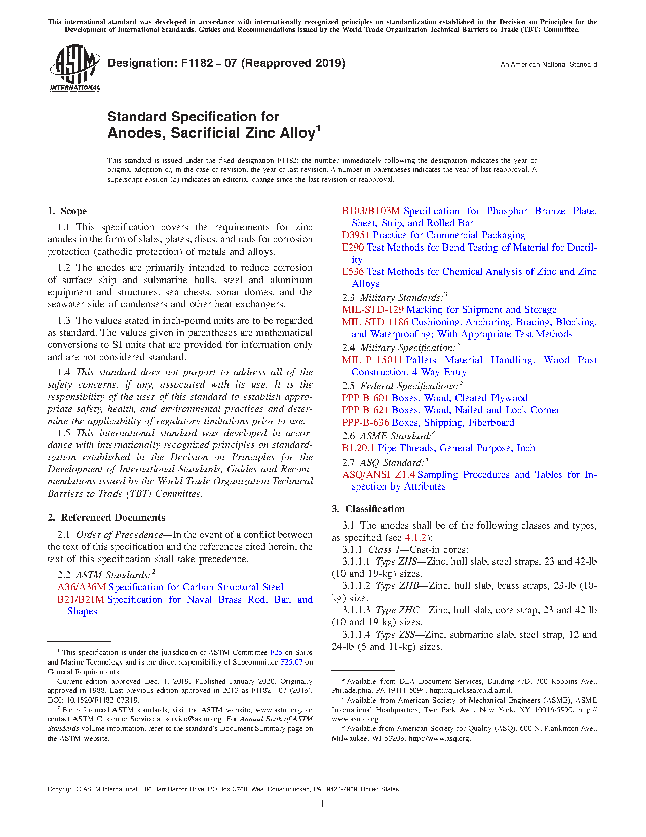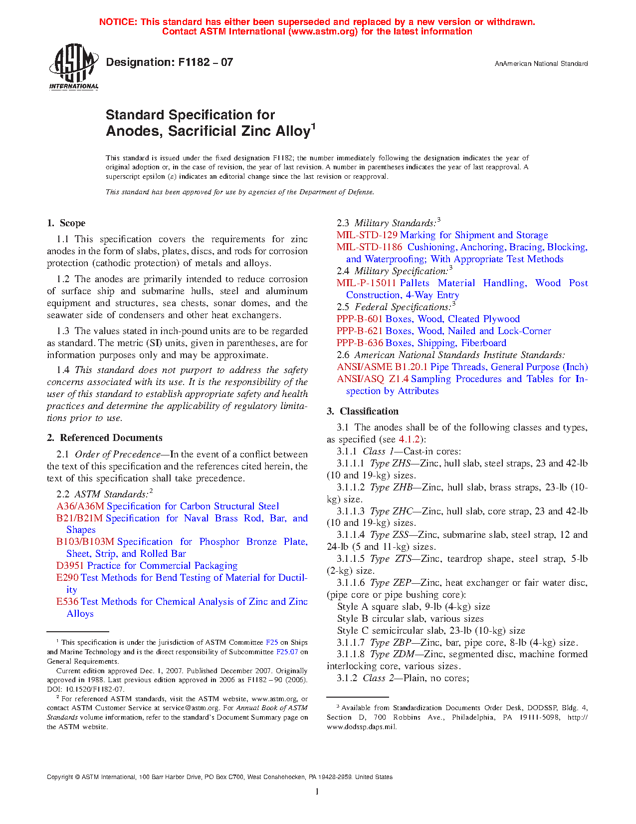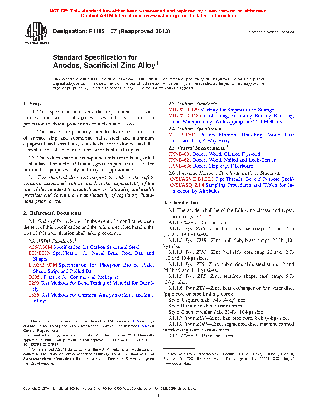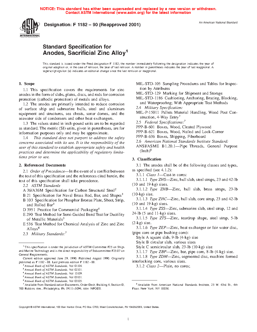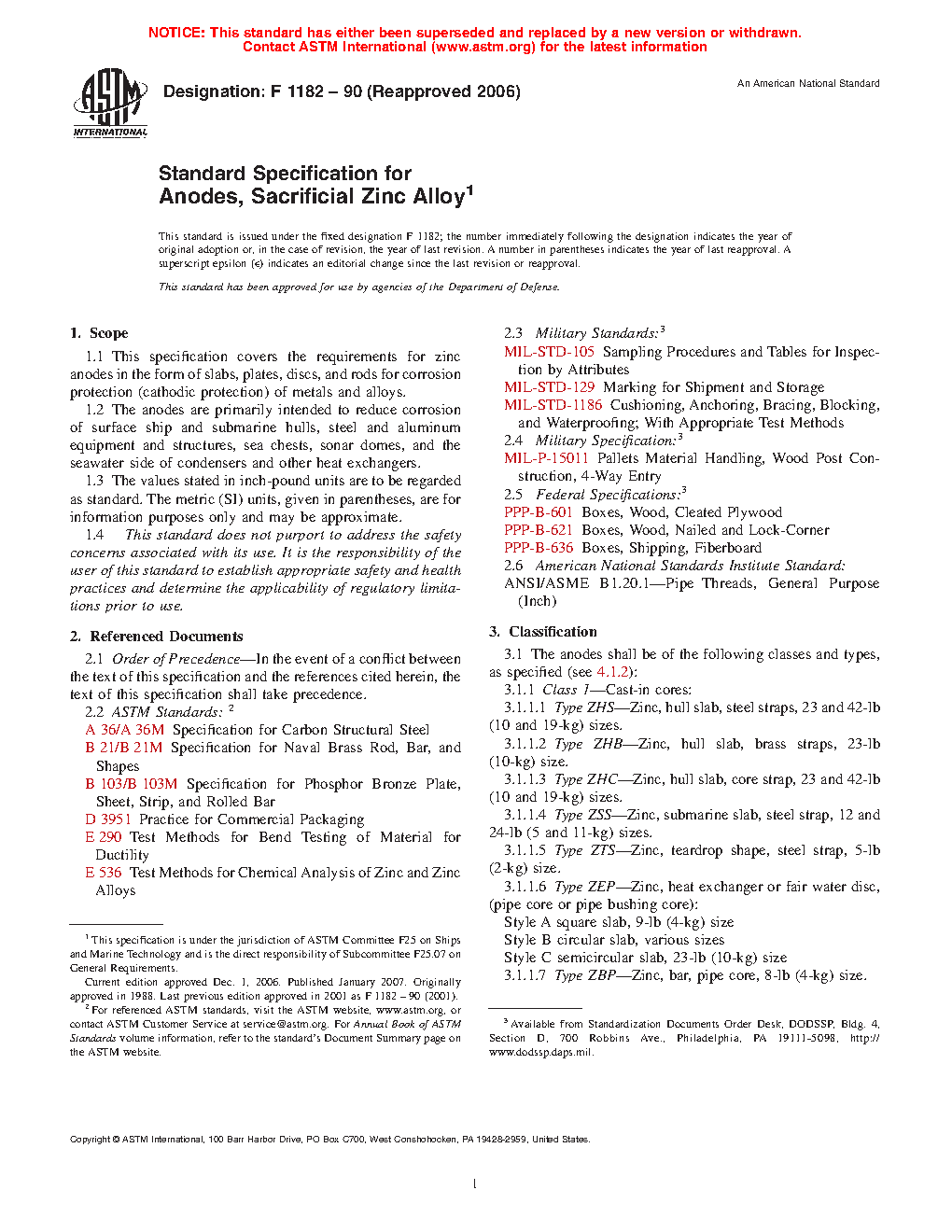 1.2 The anodes are primarily intended to reduce corrosion of surface ship and submarine hulls, steel and aluminum equipment and structures, sea chests, sonar domes, and the seawater side of condensers and other heat exchangers.
