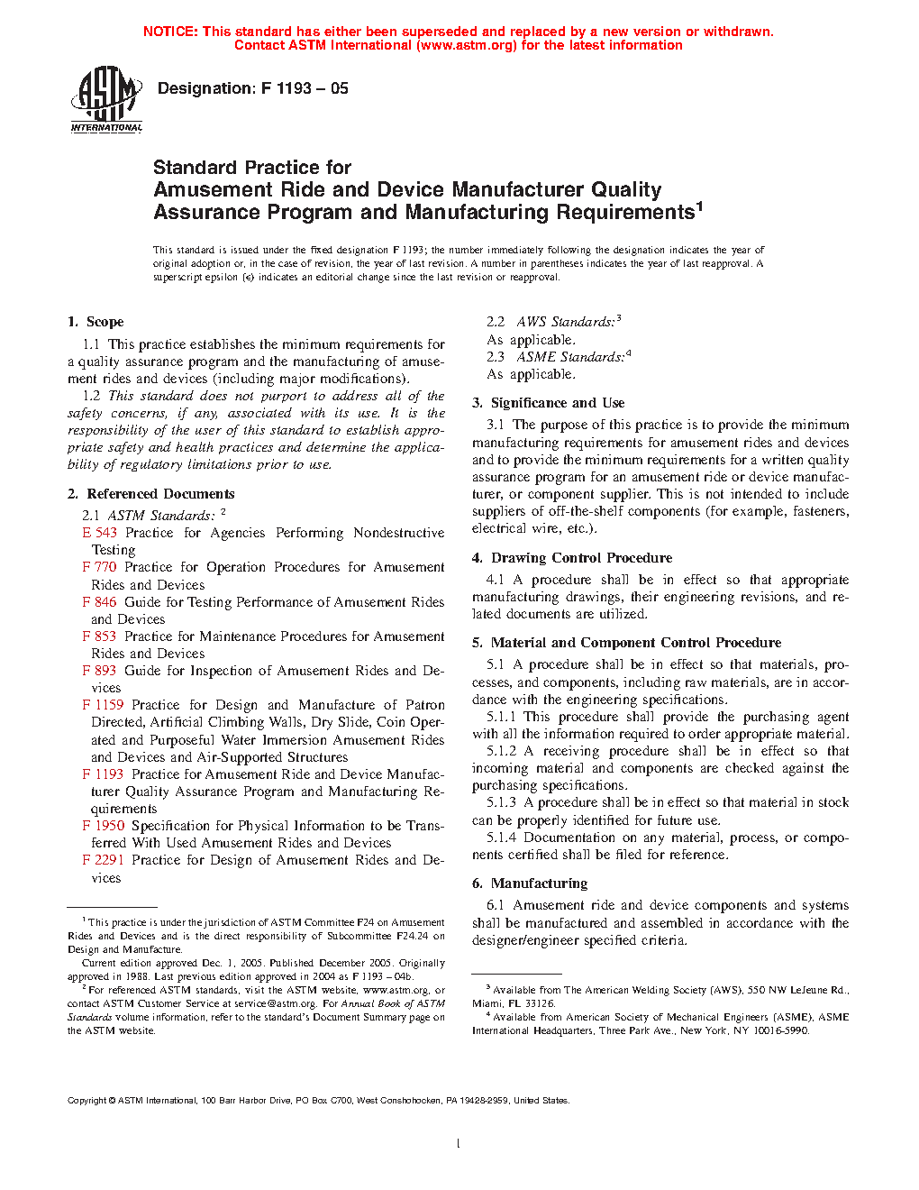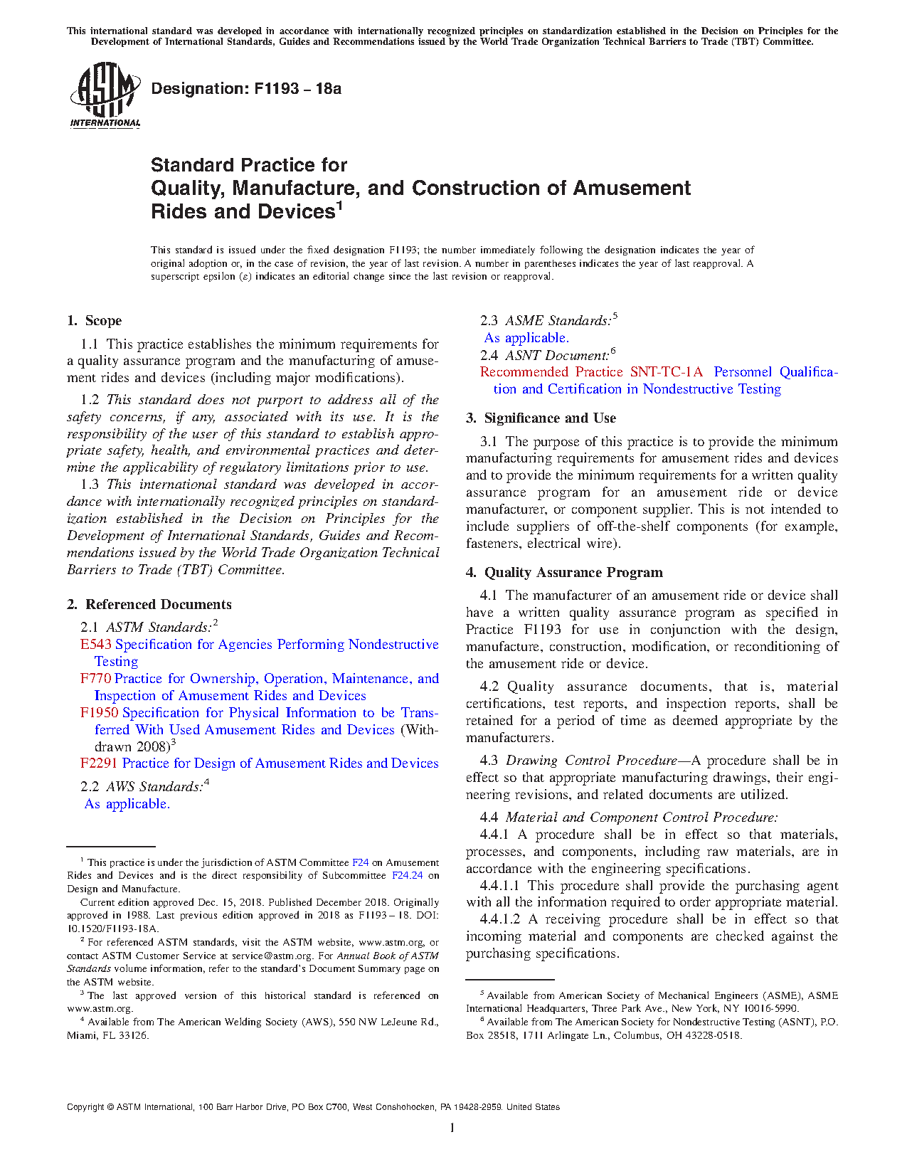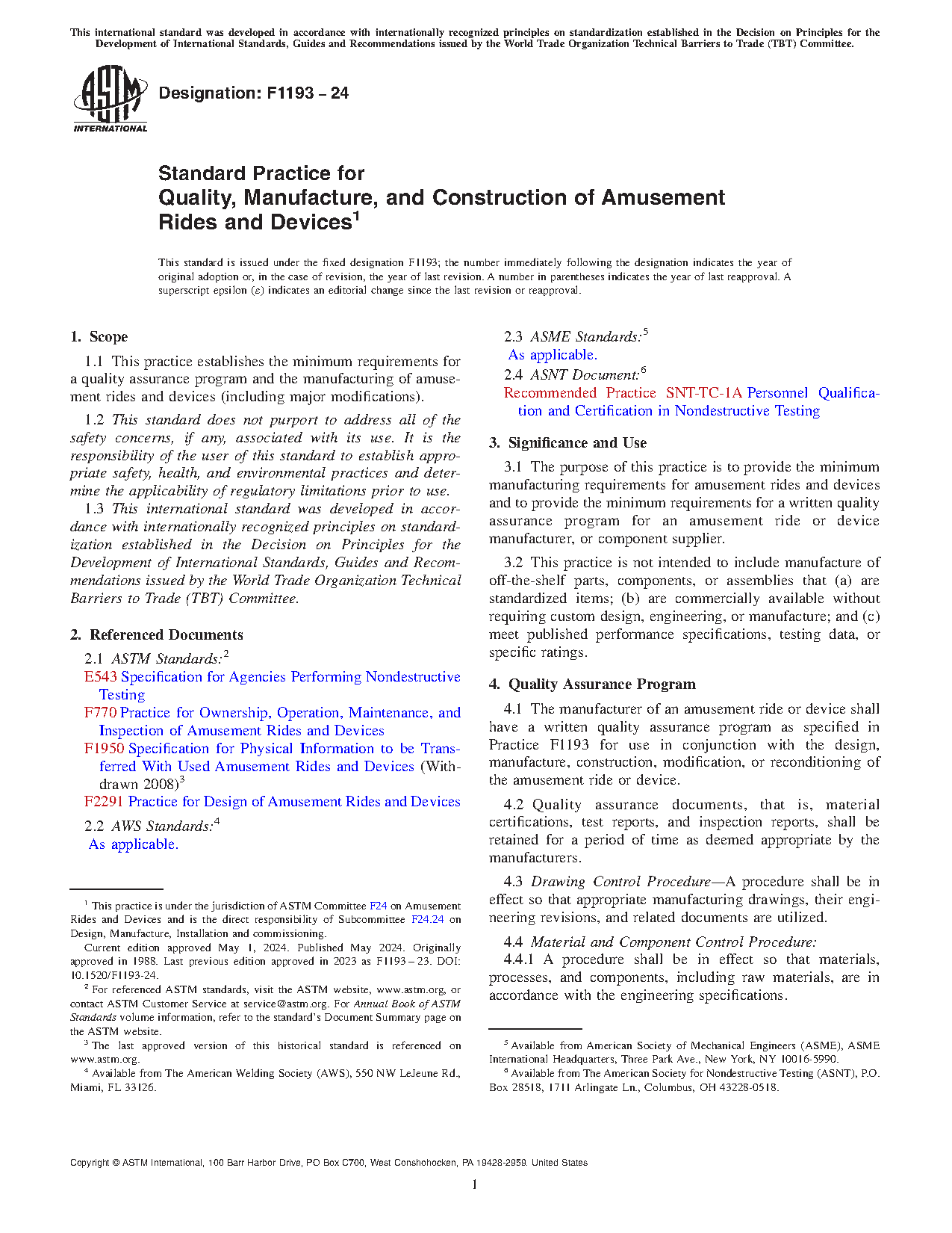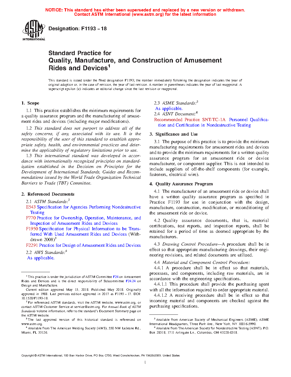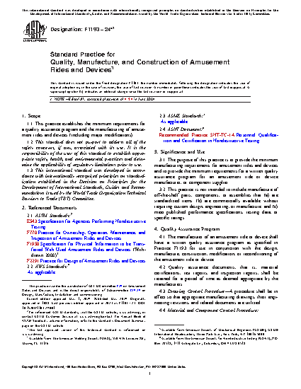1.1 This practice establishes the minimum requirements for a quality assurance program and the manufacturing of amusement rides and devices (including major modifications).