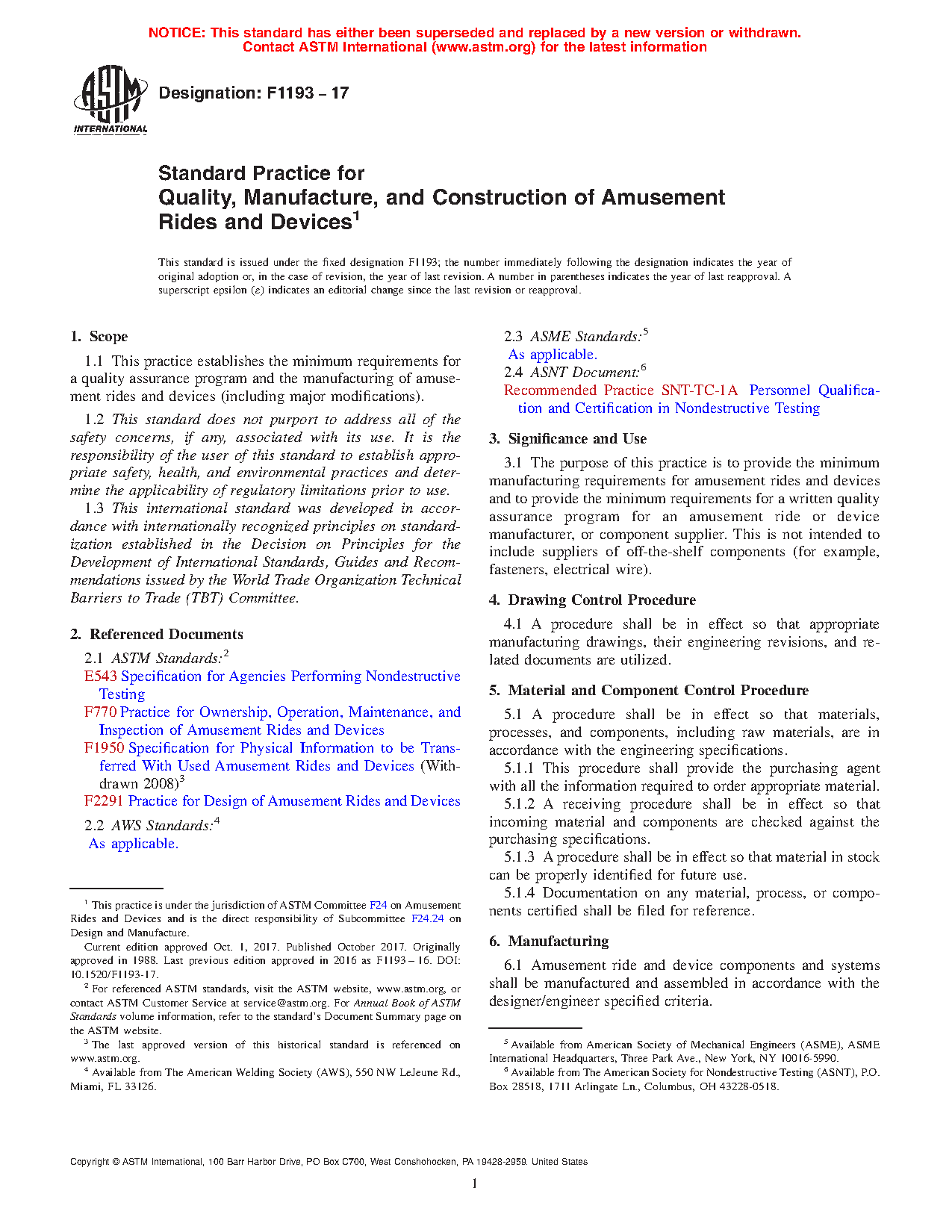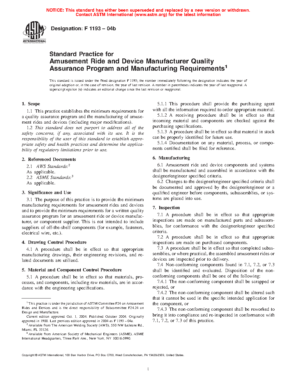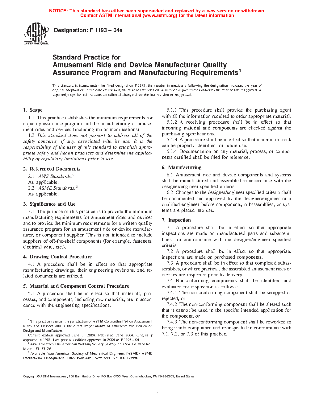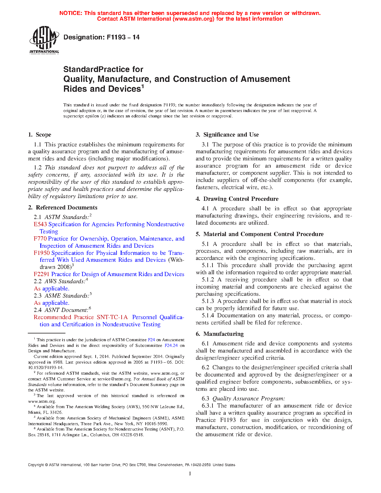 1.1 This practice establishes the minimum requirements for a quality assurance program and the manufacturing of amusement rides and devices (including major modifications).