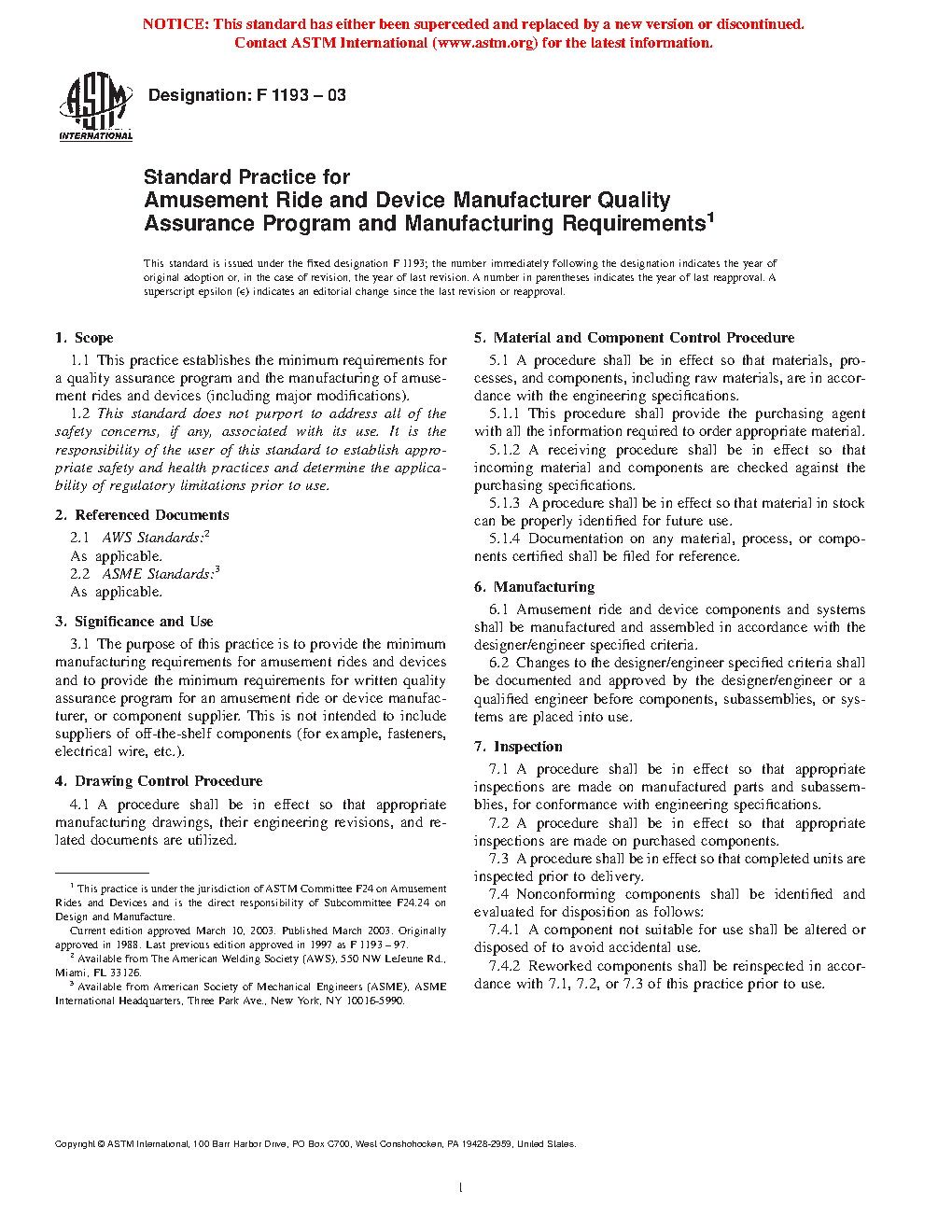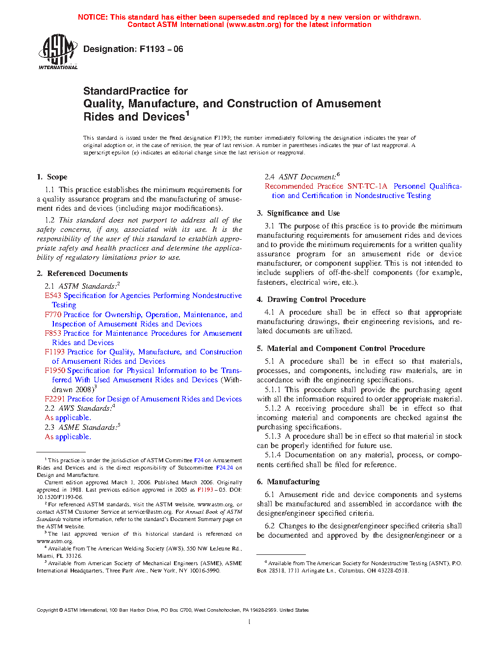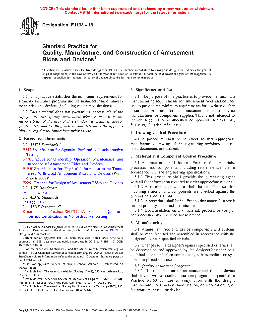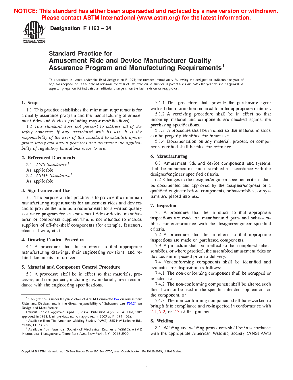 1.1 This practice establishes the minimum requirements for a quality assurance program and the manufacturing of amusement rides and devices (including major modifications).
