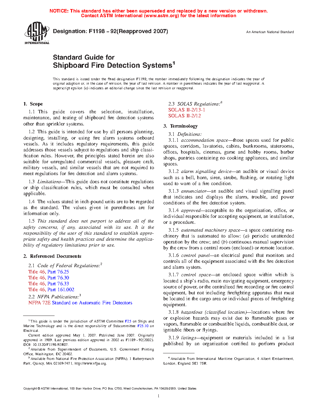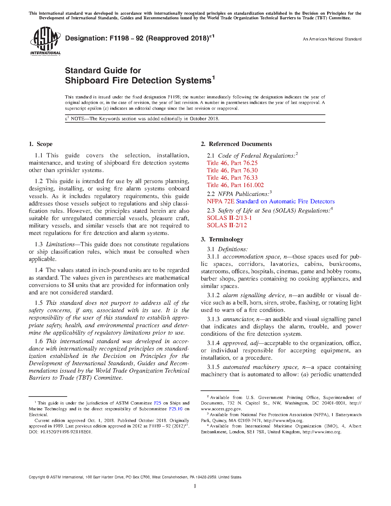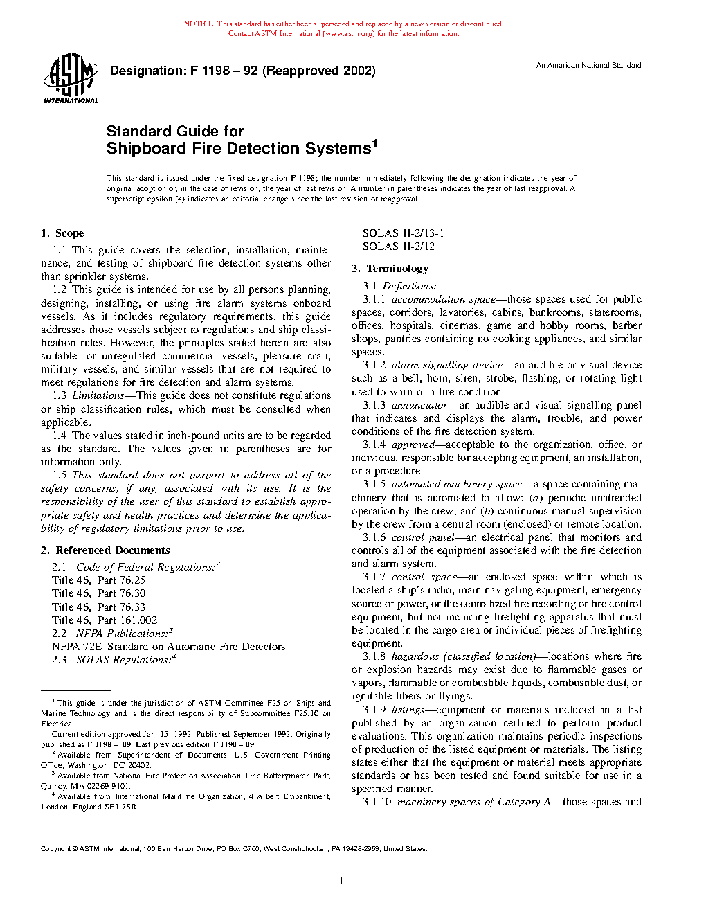 1.1 This guide covers the selection, installation, maintenance, and testing of shipboard fire detection systems other than sprinkler systems.