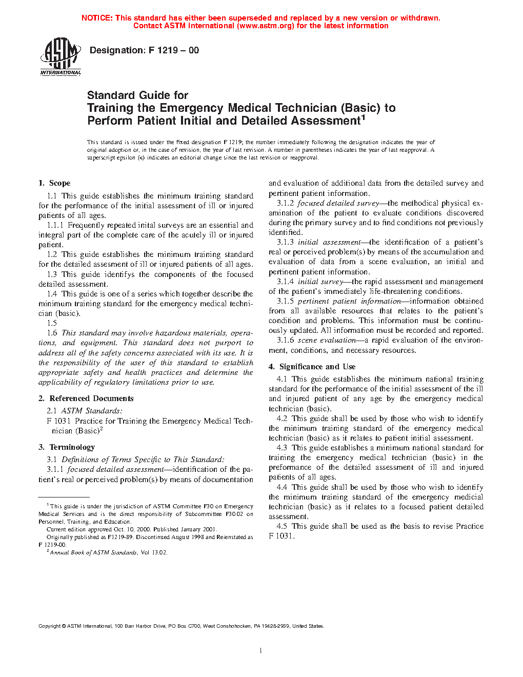 1.1 This guide establishes the minimum training standard for the performance of the initial assessment of ill or injured patients of all ages.