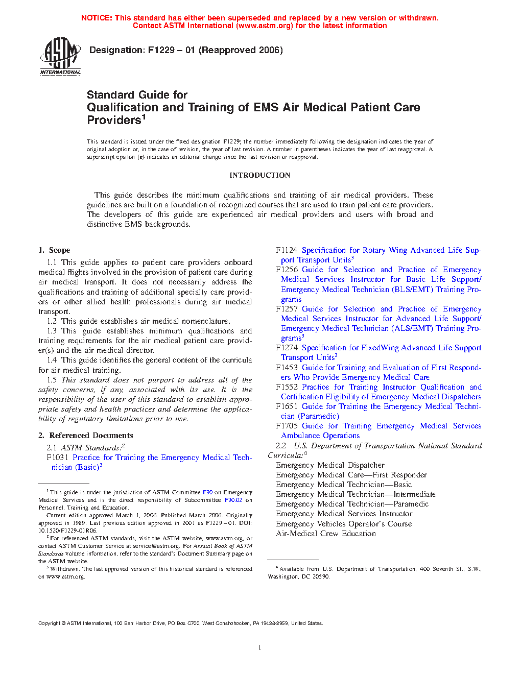 1.1 This guide applies to patient care providers onboard medical flights involved in the provision of patient care during air medical transport. It does not necessarily address the qualifications and training of additional specialty care providers or other allied health professionals during air medical transport.