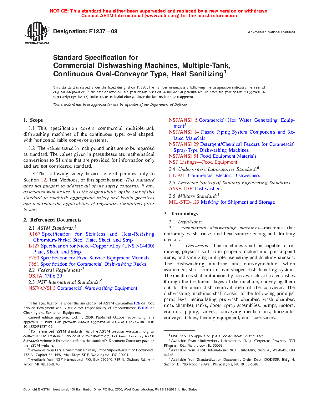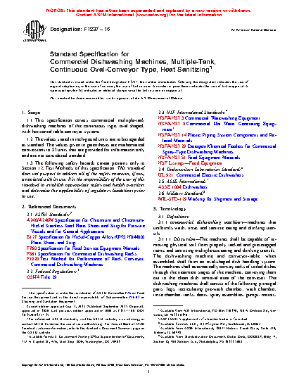 1.1 This specification covers commercial multiple-tank dishwashing machines of the continuous type, oval shaped, with horizontal table conveyor systems.