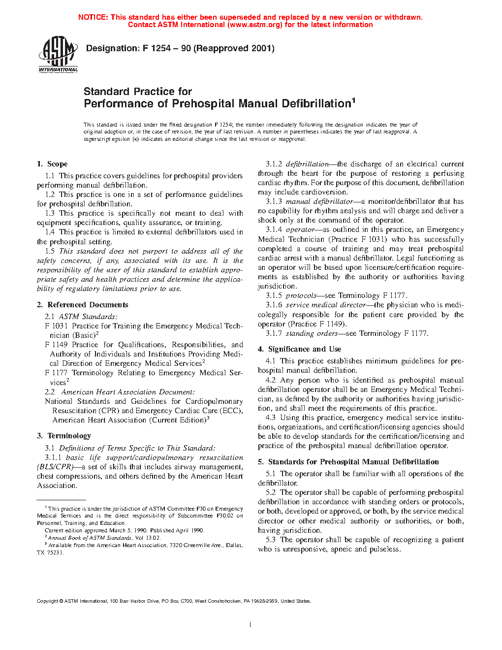 Standard Practice for Performance of Prehospital Manual Defibrillation