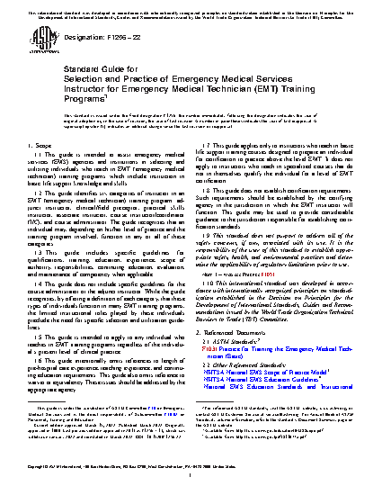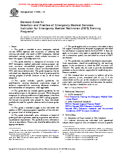 1.1 This guide is intended to assist emergency medical services (EMS) agencies and institutions in selecting and utilizing individuals who teach in EMT (emergency medical technician) training programs which include instruction in basic life support knowledge and skills.
