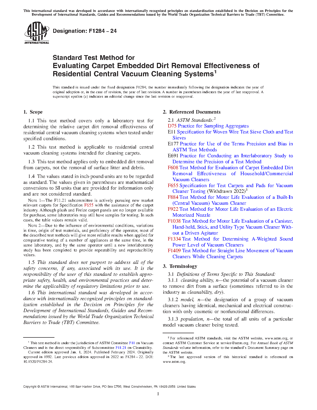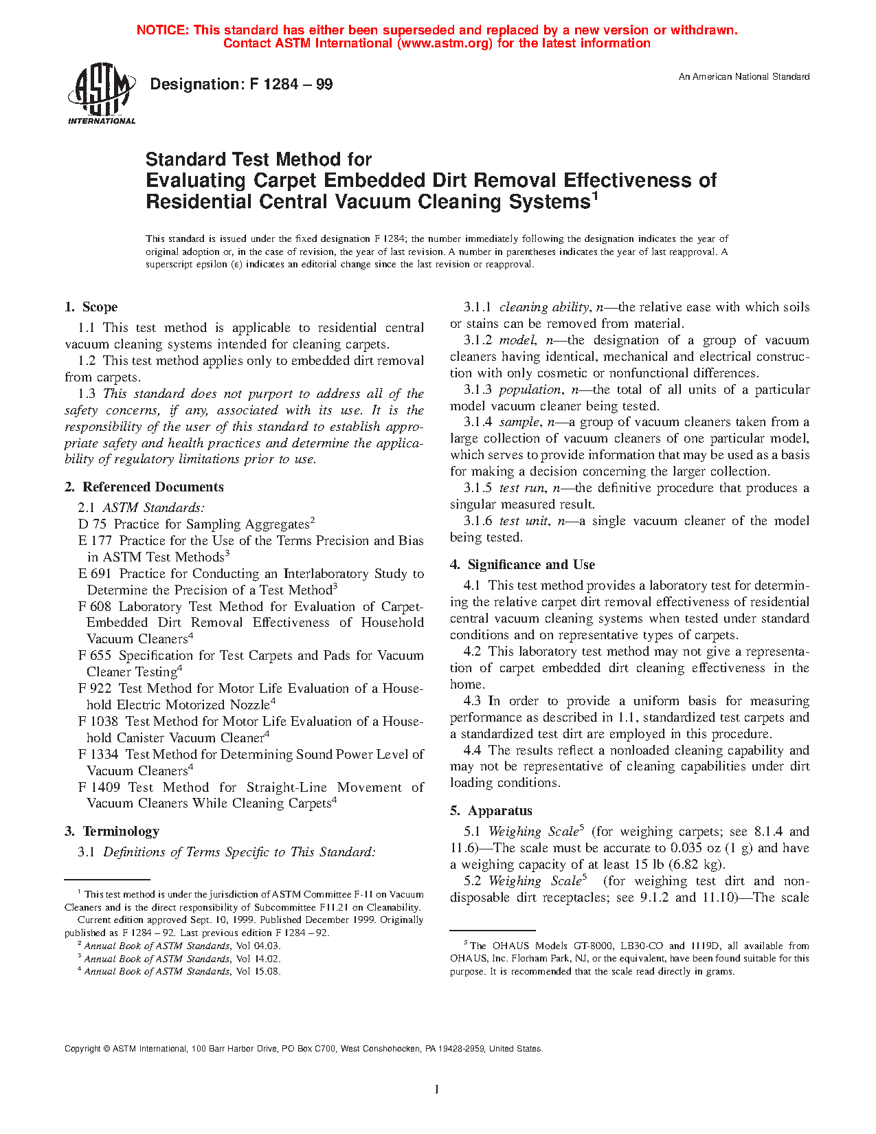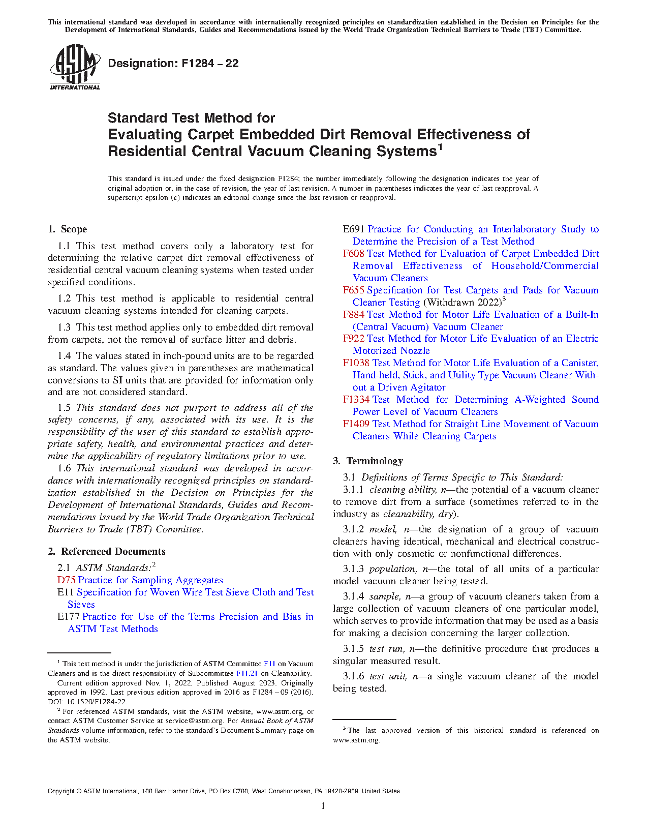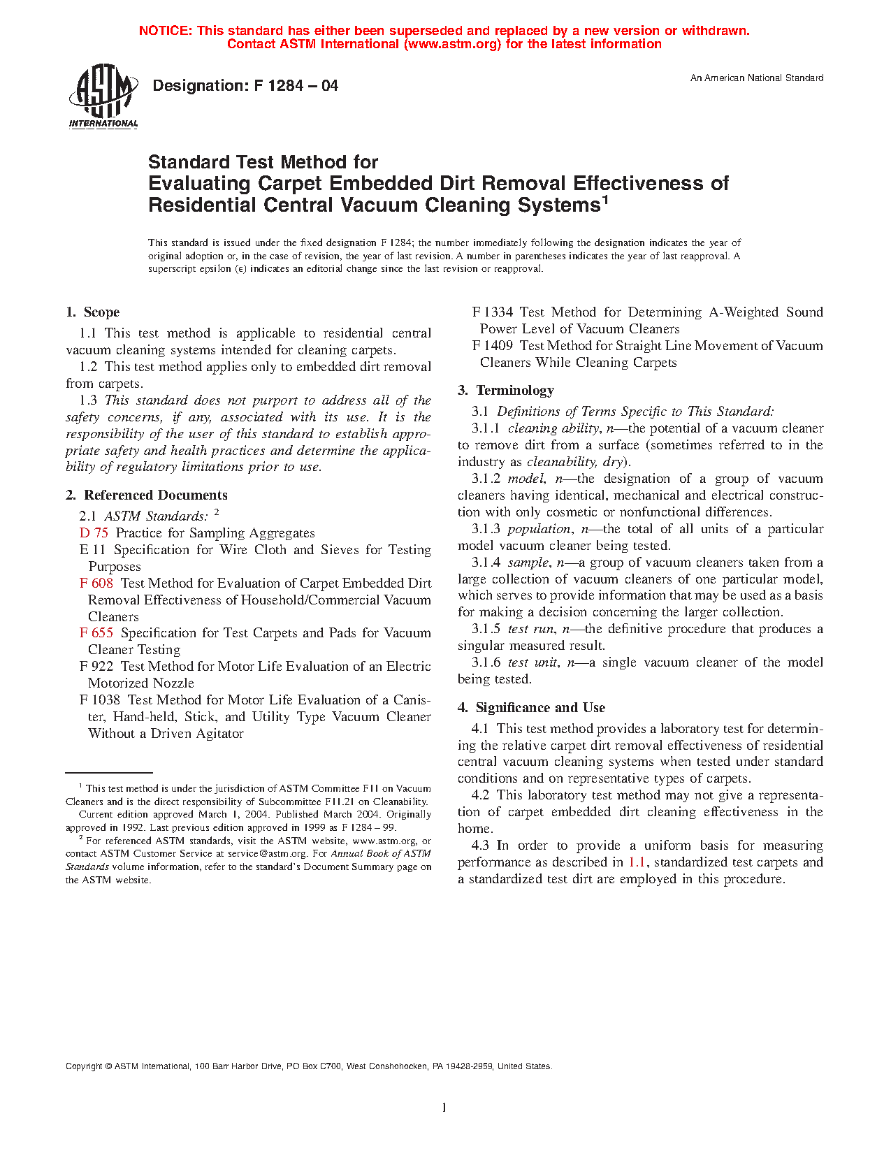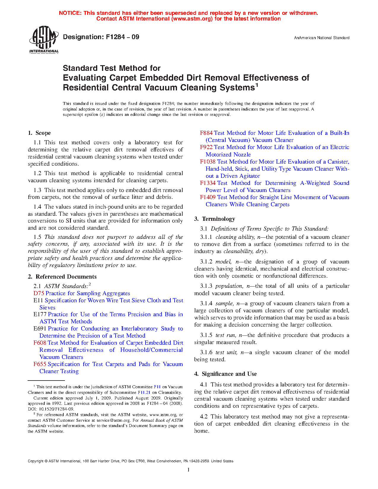 1.2 This test method is applicable to residential central vacuum cleaning systems intended for cleaning carpets.