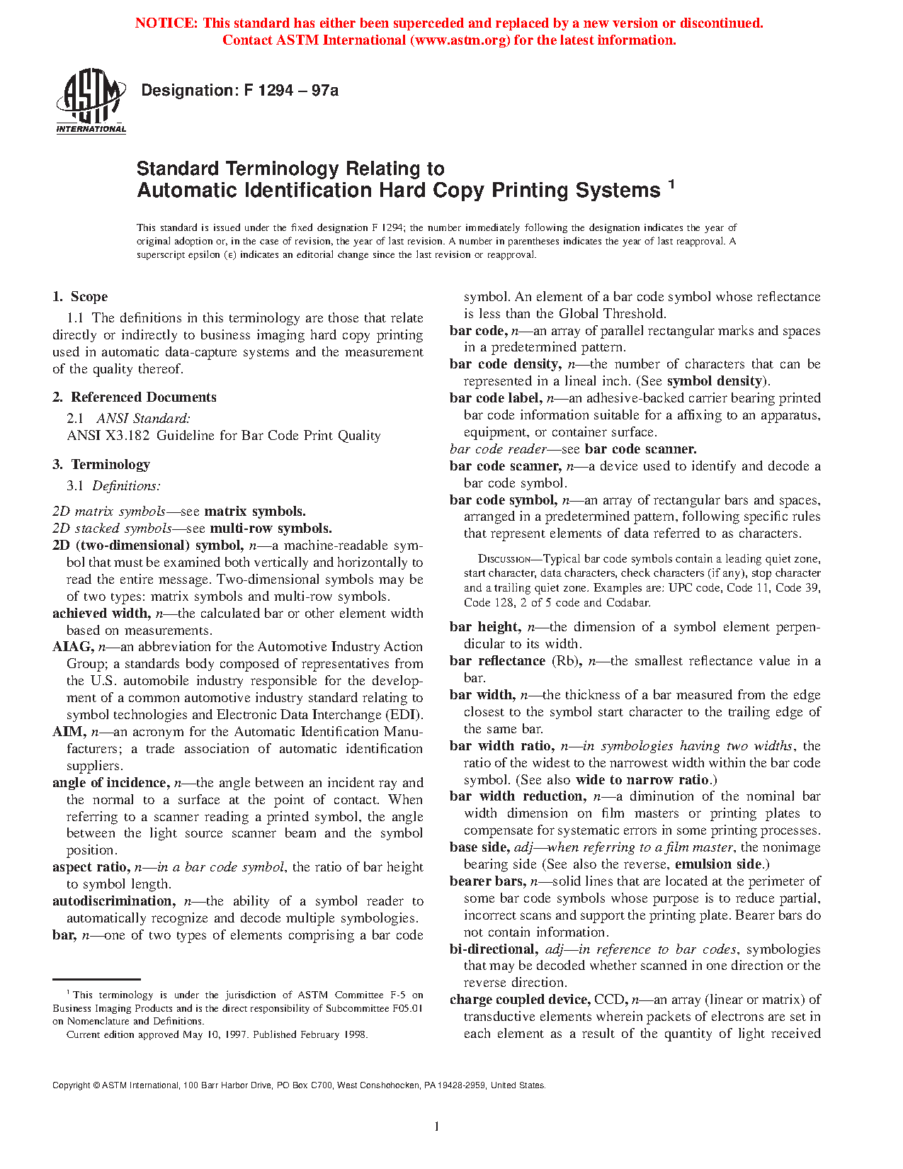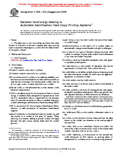 Standard Terminology Relating to Automatic Identification Hard Copy Printing Systems (Withdrawn 2017)