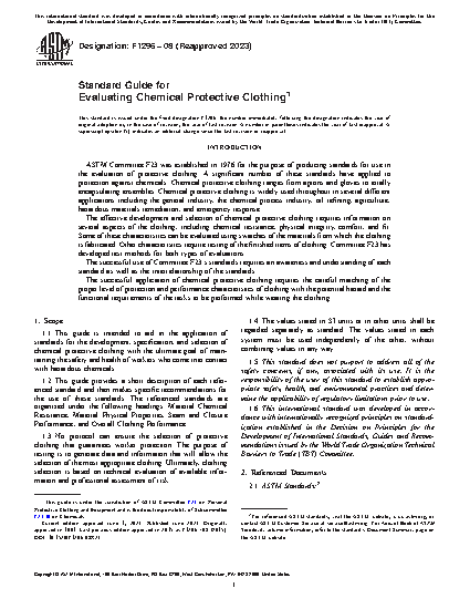 4.6 Recommendations for labeling chemical protective clothing are provided in Practice F1301, recommendations for implementing a chemical protective clothing program are provided in Practice F1461, and recommendations for preparing care and maintenance instructions are provided in Practice F2061.