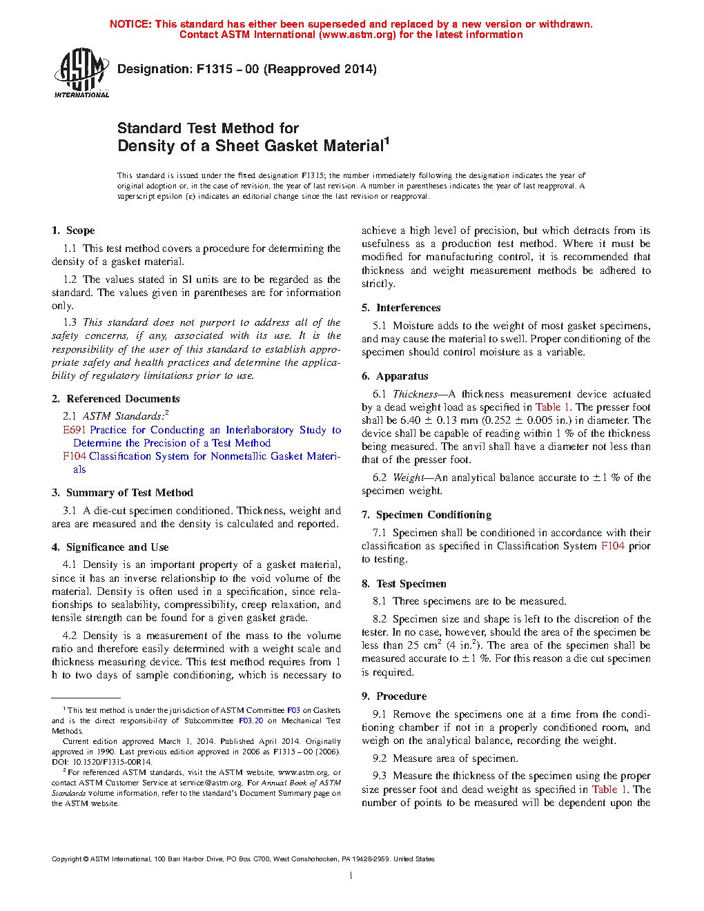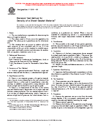 1.1 This test method covers a procedure for determining the density of a gasket material.