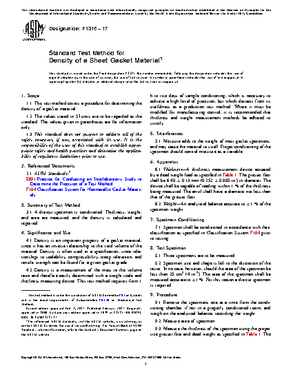 1.1 This test method covers a procedure for determining the density of a gasket material.