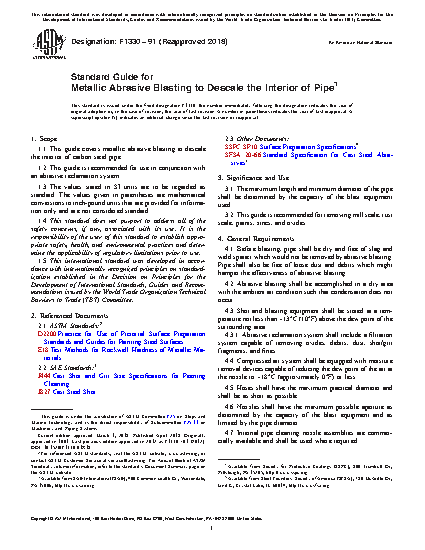 1.1 This guide covers metallic abrasive blasting to descale the interior of carbon steel pipe.