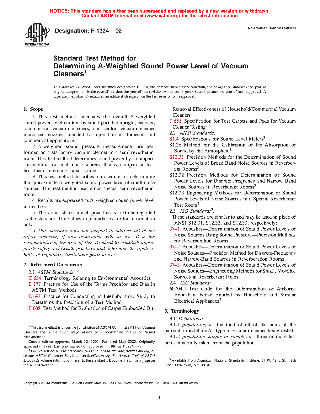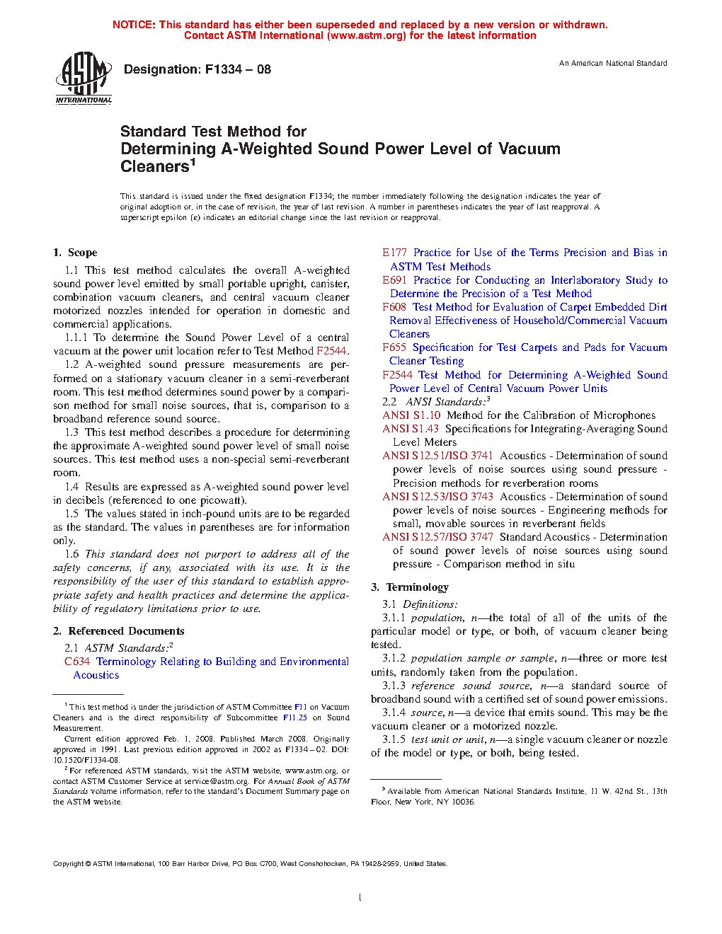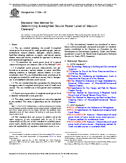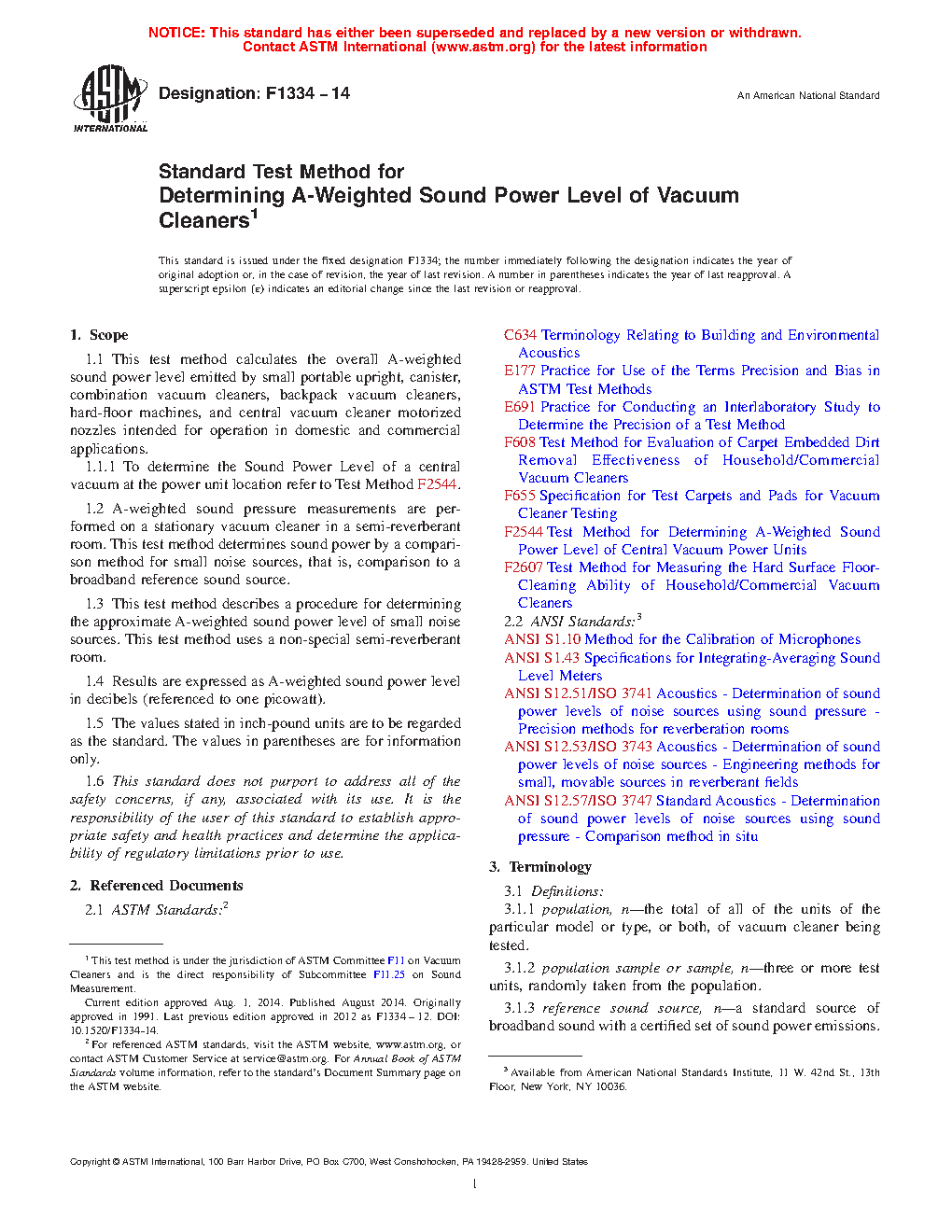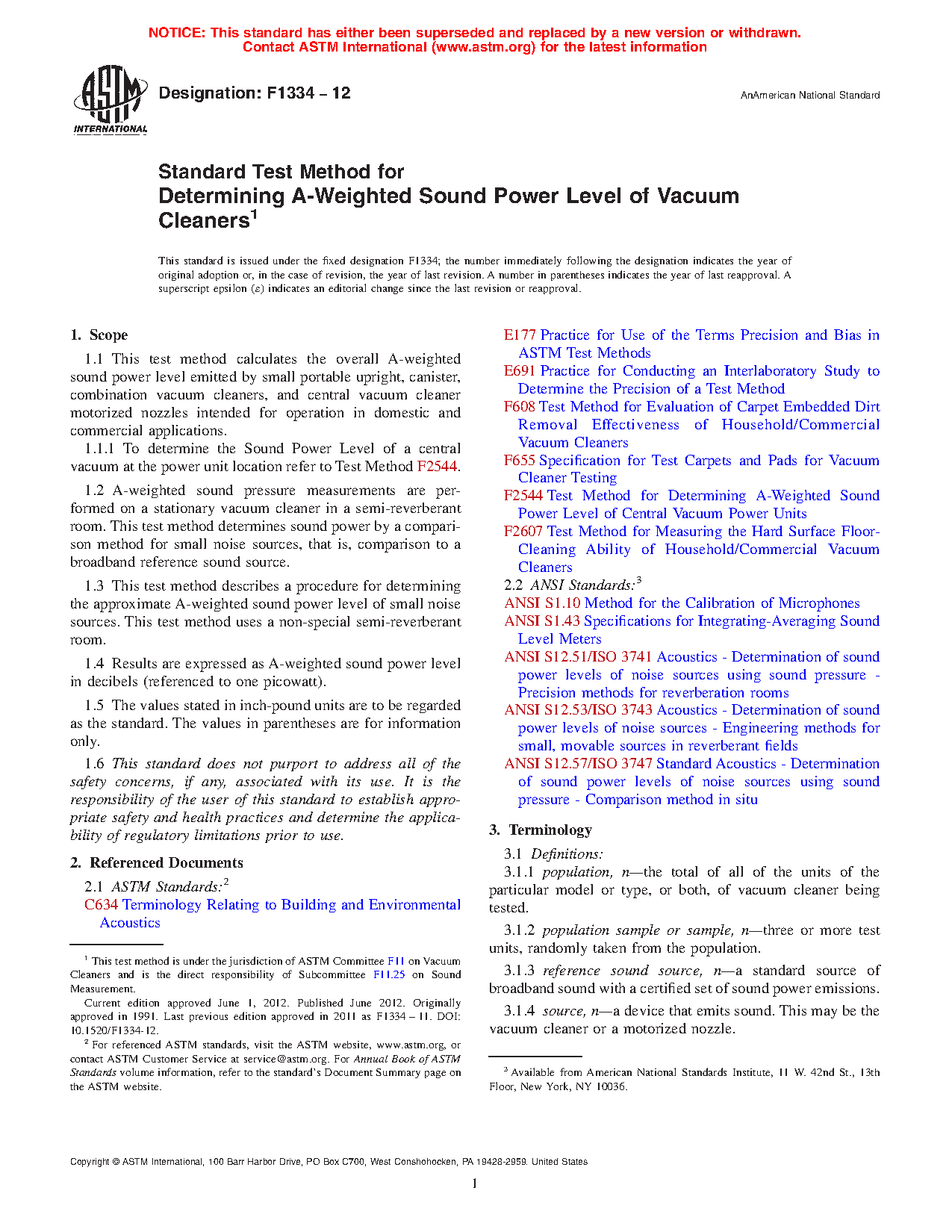 1.1.1 To determine the Sound Power Level of a central vacuum at the power unit location refer to Test Method F 2544