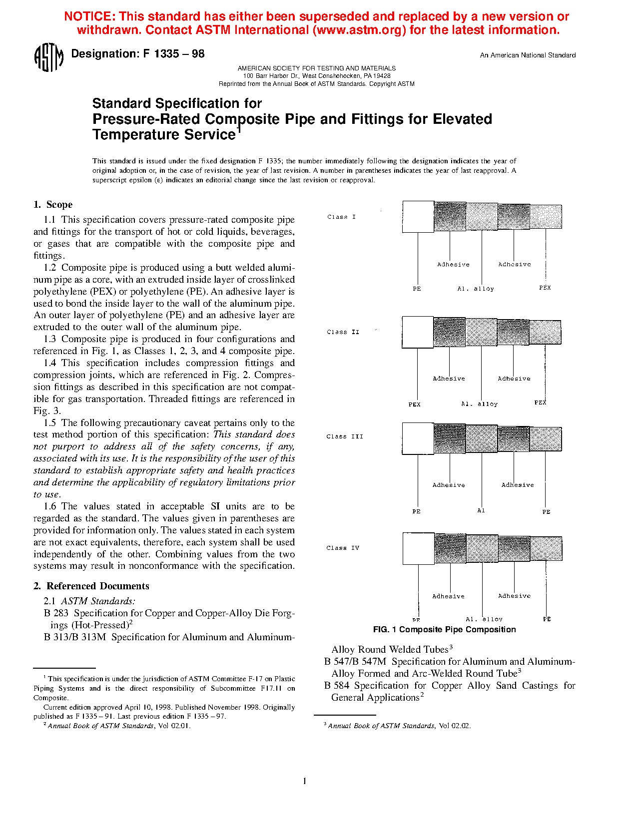 1.3 Composite pipe is produced in four configurations and referenced in Fig 1, as Classes 1, 2, 3, and 4 composite pipe.