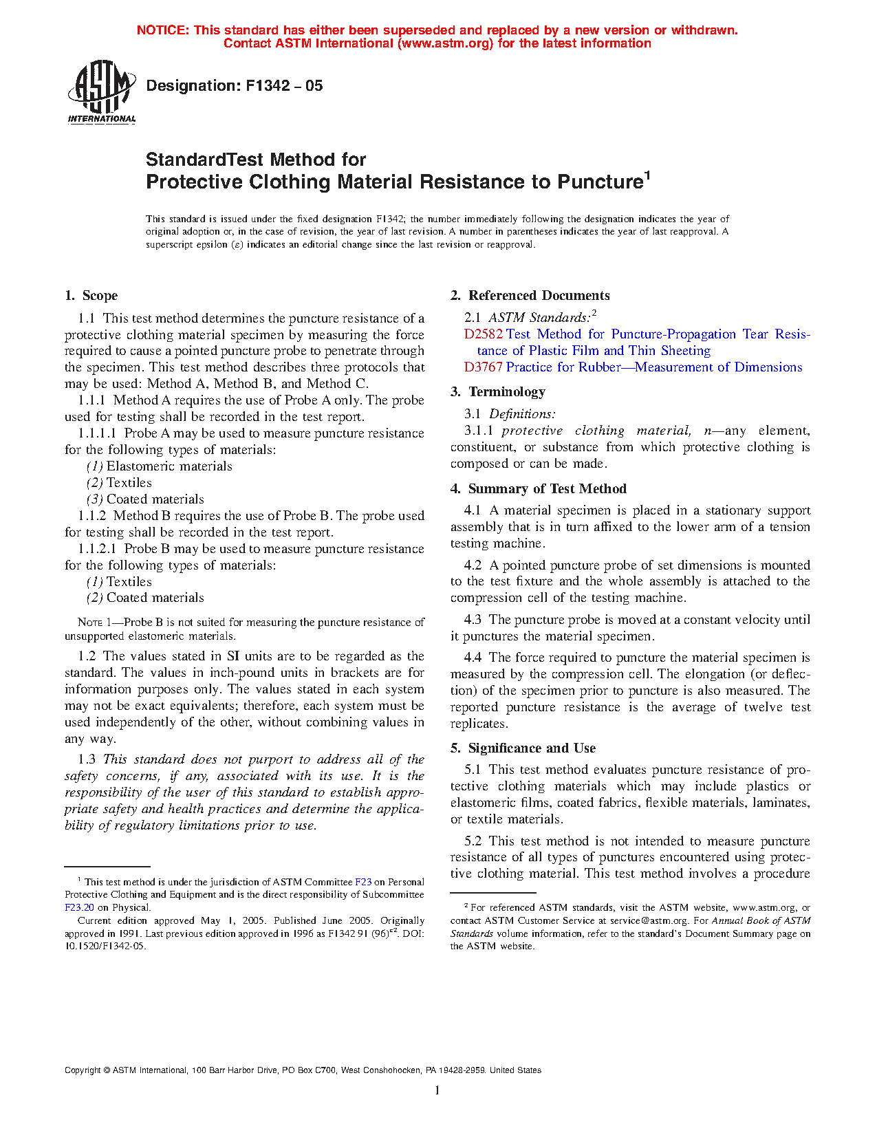 ASTM F1342/F1342M-05(2013)e1