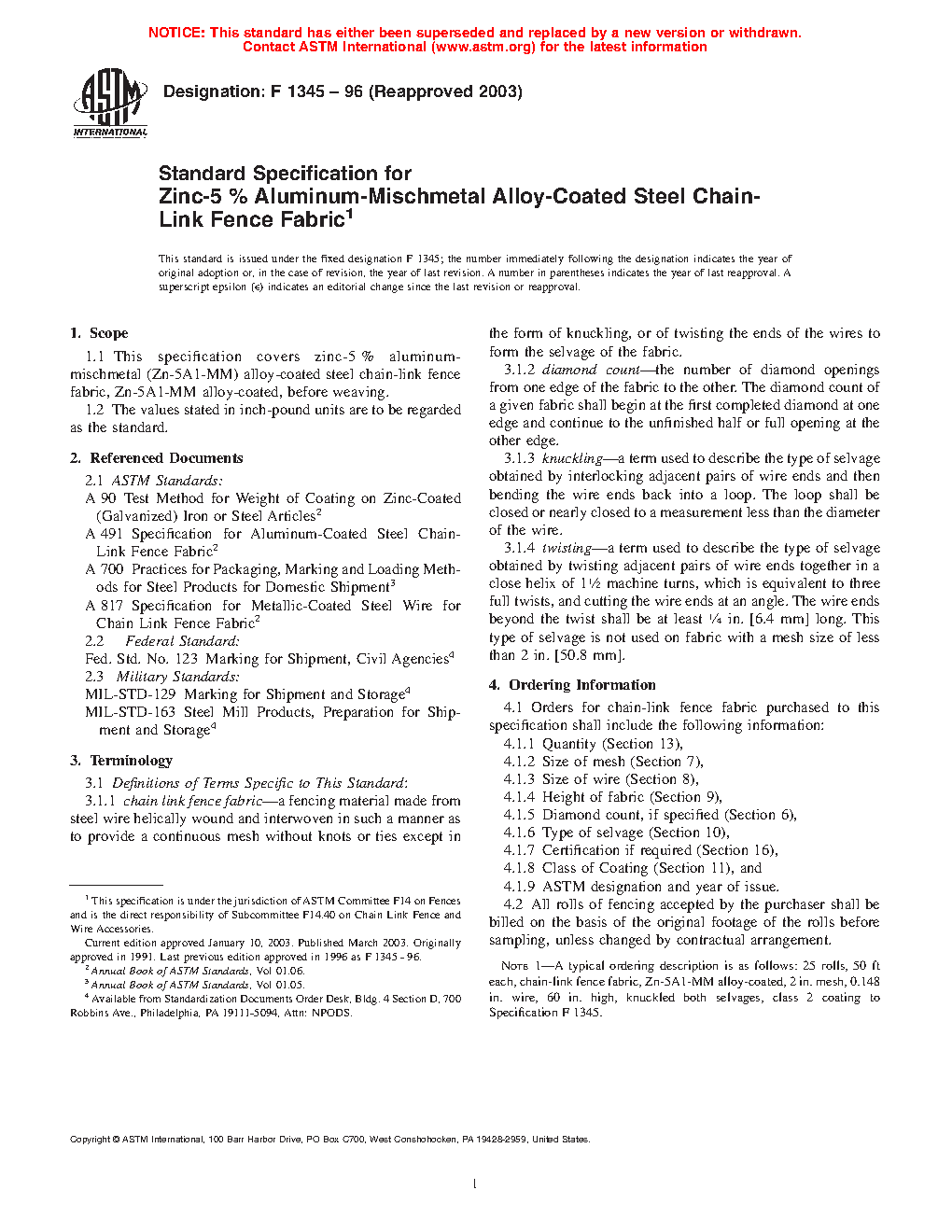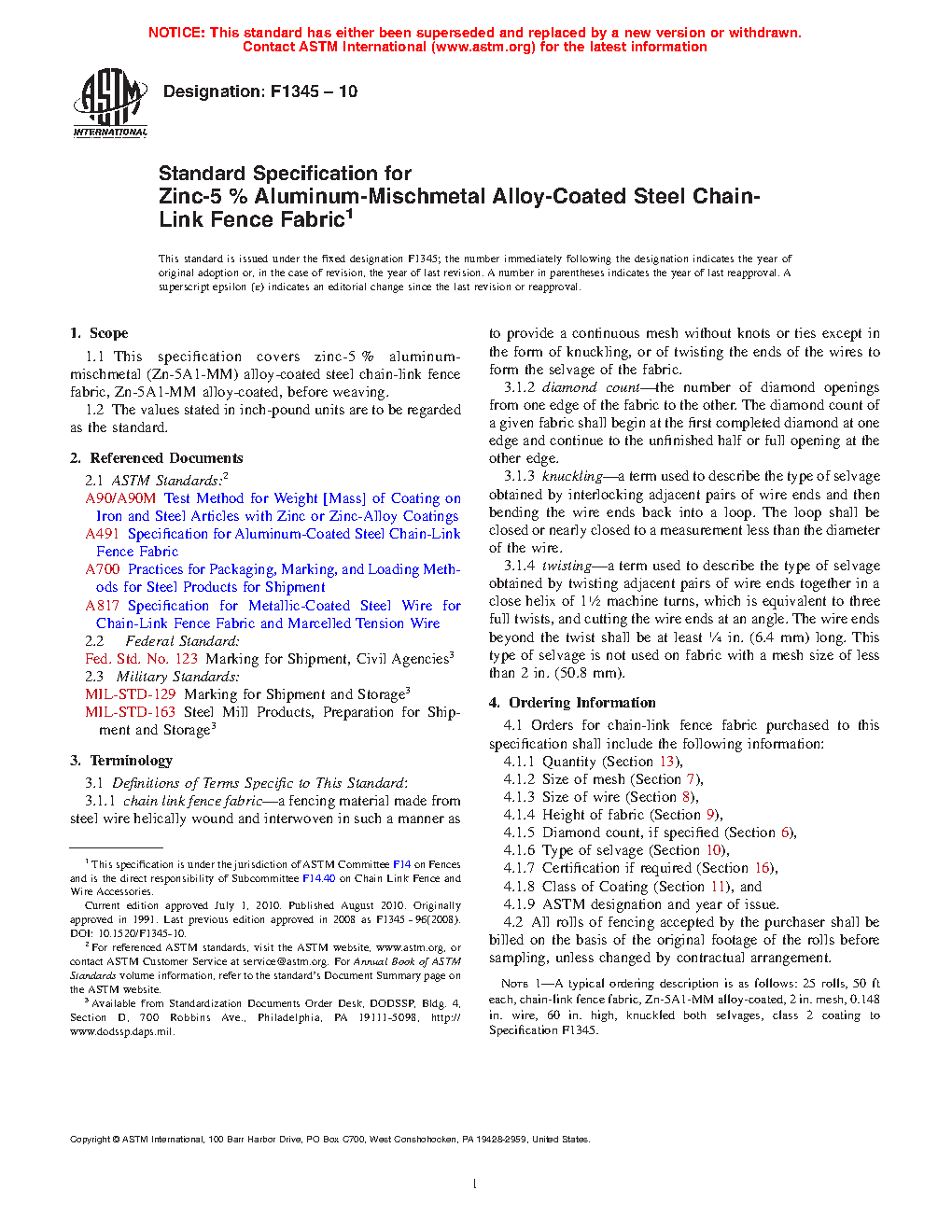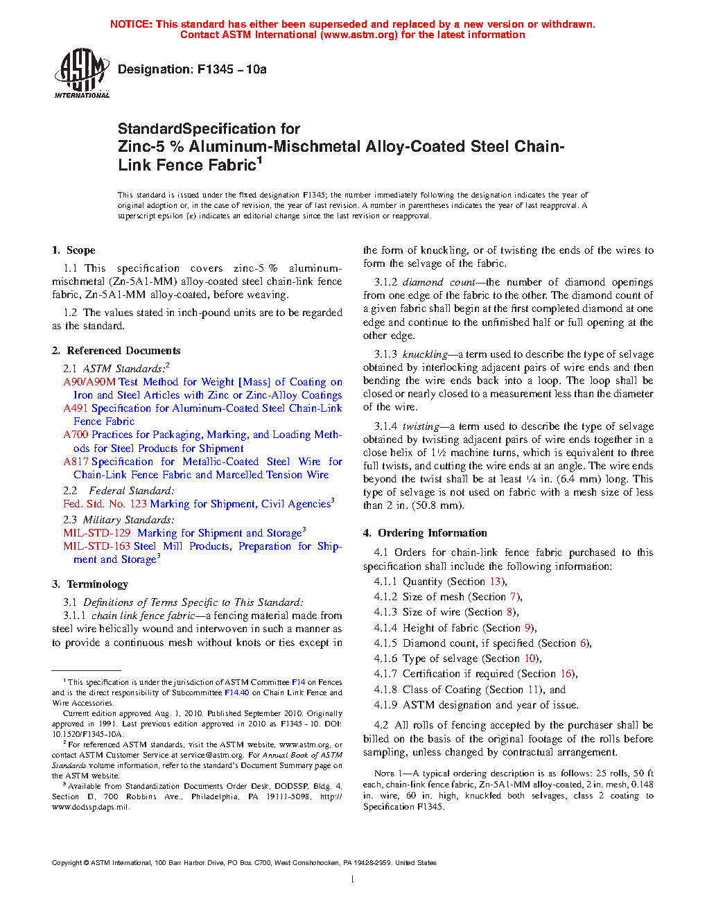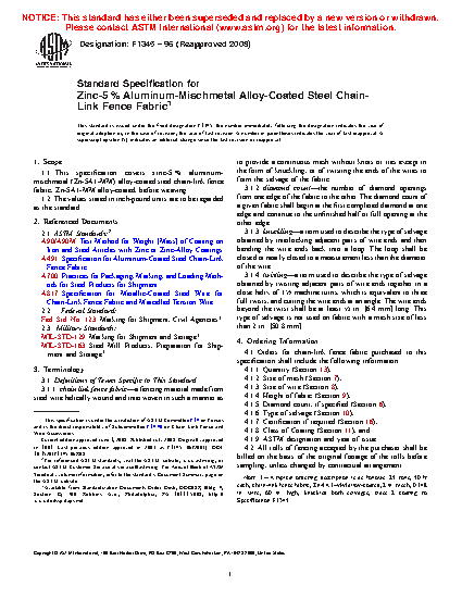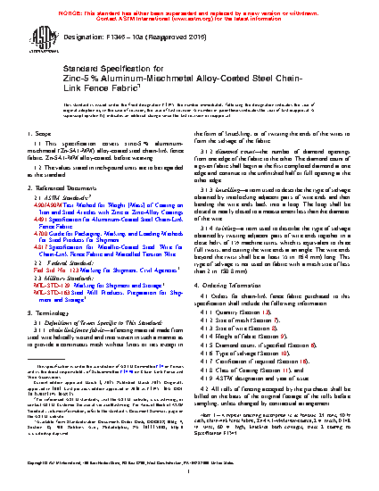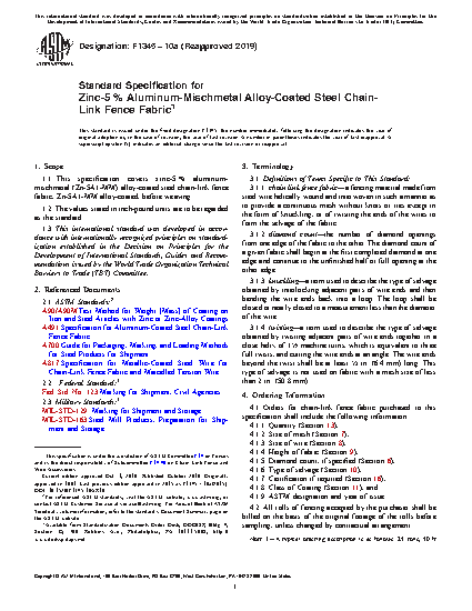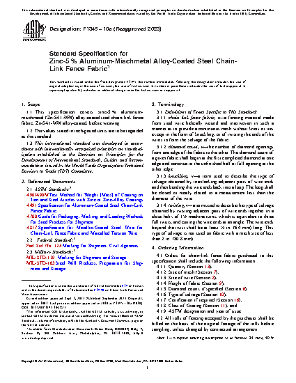 1.1 This specification covers zinc-5% aluminum-mischmetal (Zn-5A1-MM) alloy-coated steel chain-link fence fabric, Zn-5A1-MM alloy-coated, before weaving.