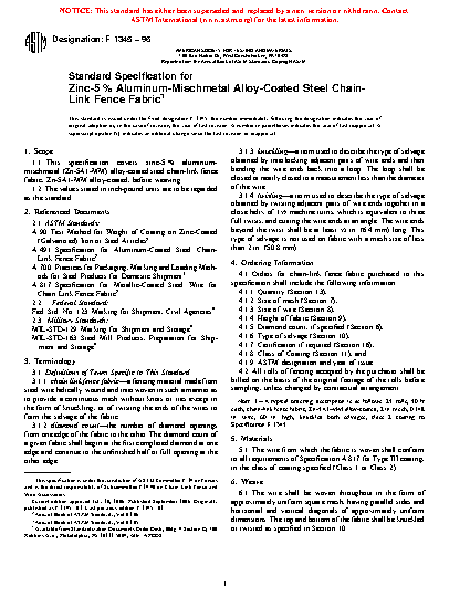 Standard Specification for Zinc-5% Aluminum-Mischmetal Alloy-Coated Steel Chain-Link Fence Fabric