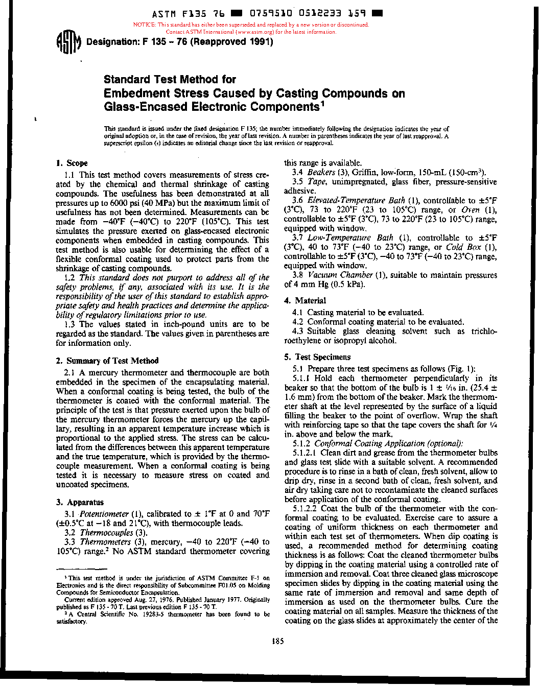 Test Method for Embedment Stress Caused by Casting Compounds on Glass-Encased Electronic Components (Withdrawn 1997)