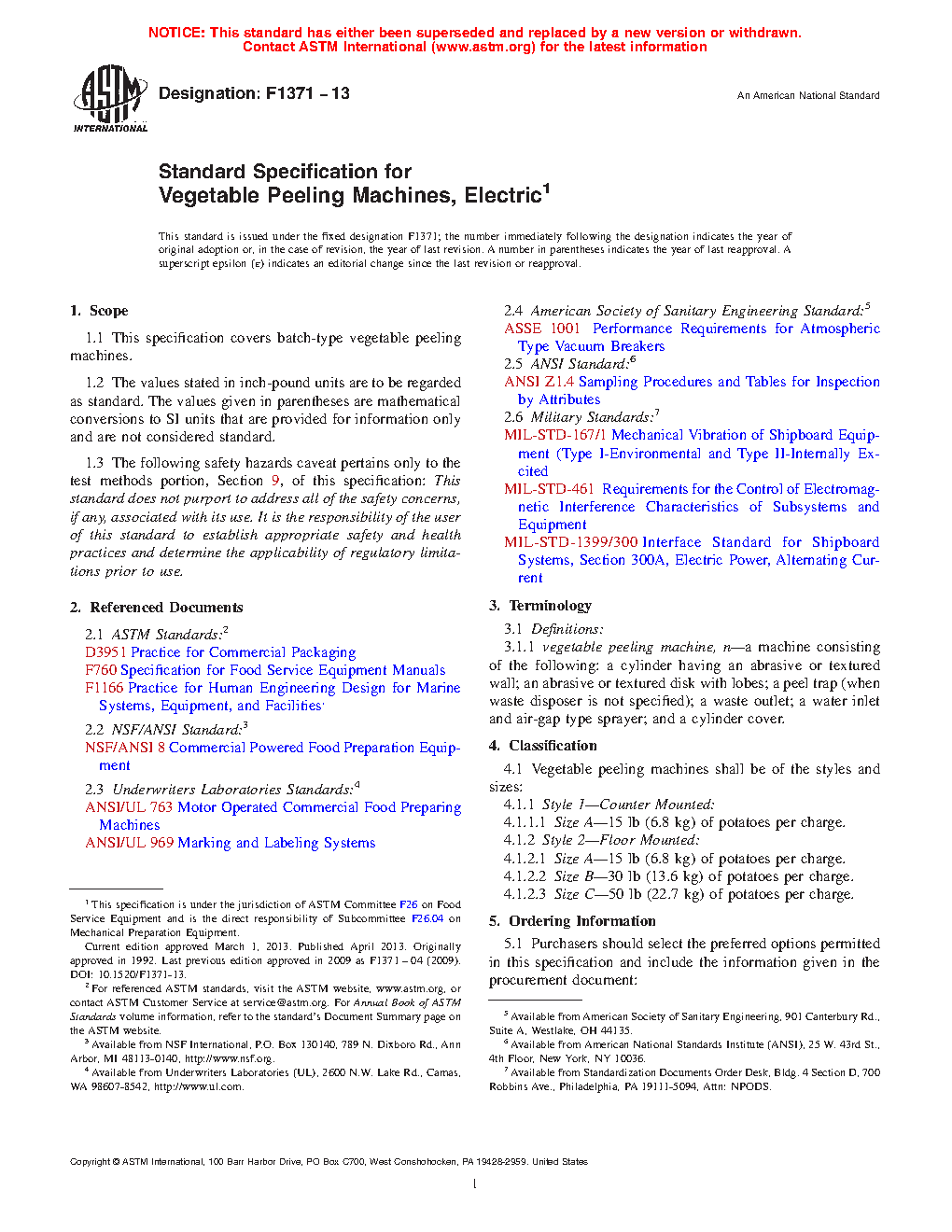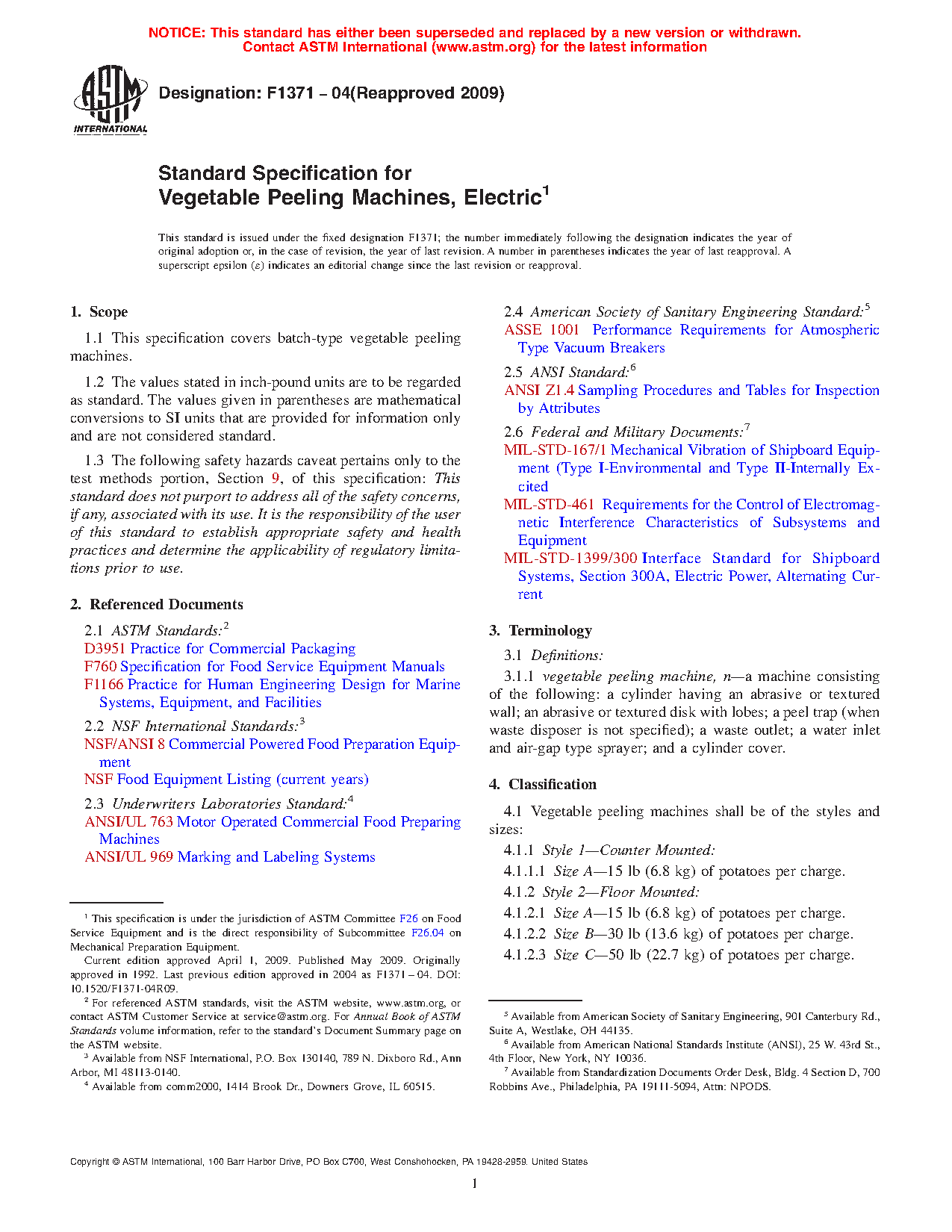 1.1 This specification covers batch-type vegetable peeling machines.