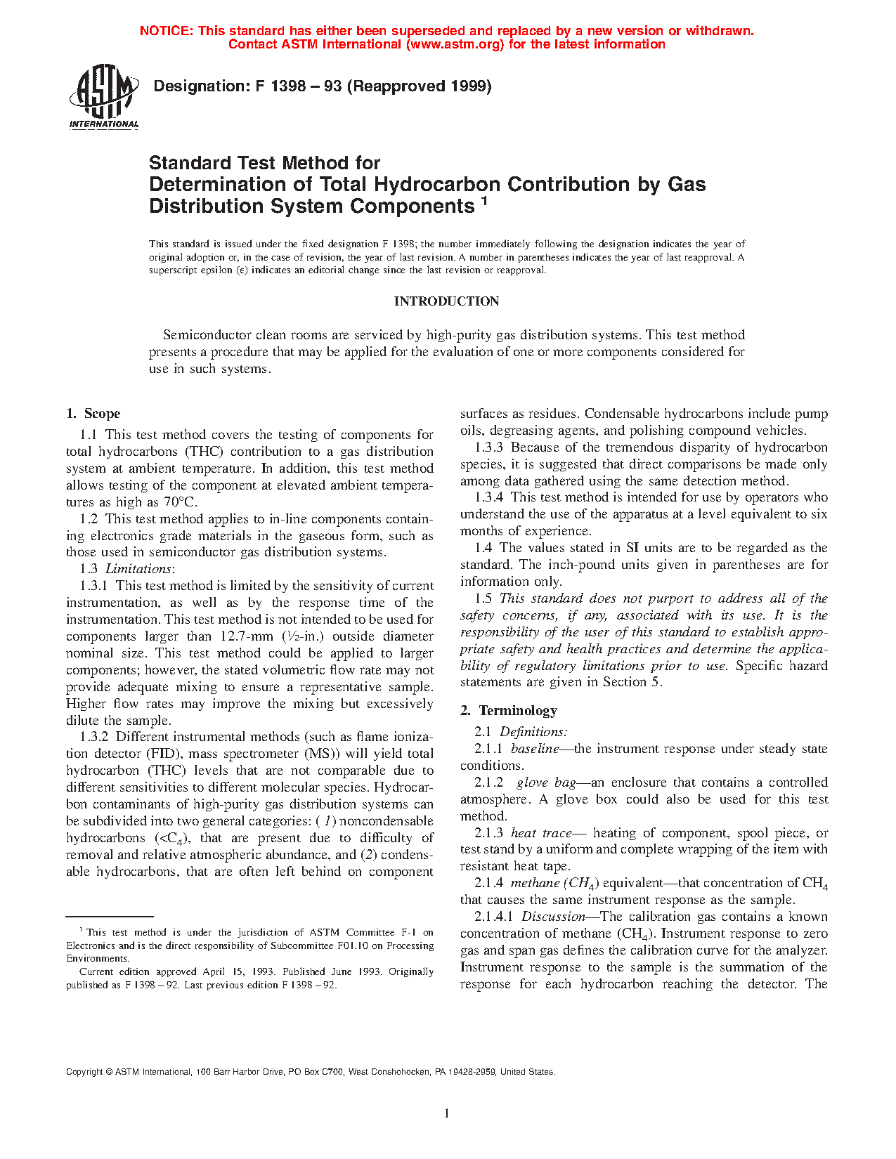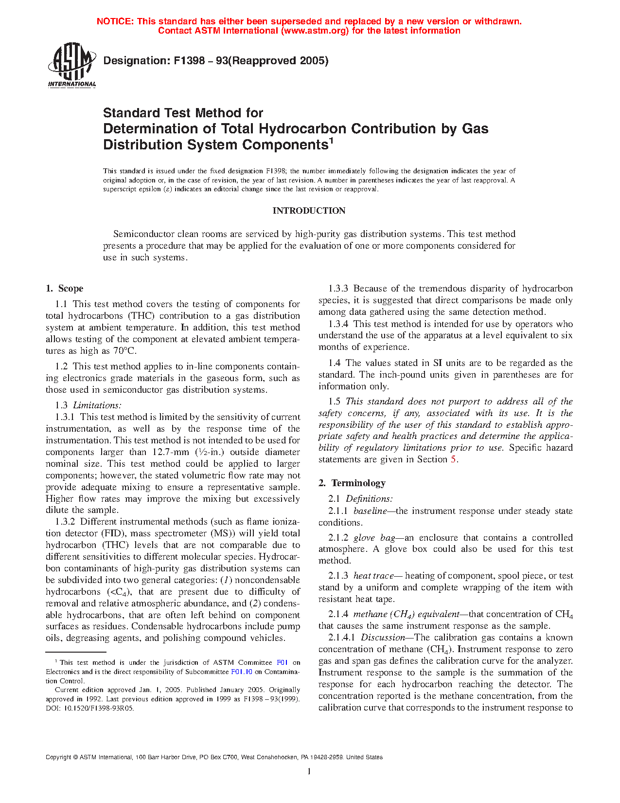 1.3.2 Different instrumental methods (such as flame ionization detector (FID), mass spectrometer (MS)) will yield total hydrocarbon (THC) levels that are not comparable due to different sensitivities to different molecular species. Hydrocarbon contaminants of high-purity gas distribution systems can be subdivided into two general categories: (1) noncondensable hydrocarbons (<C4), that are present due to difficulty of removal and relative atmospheric abundance, and (2) condensable hydrocarbons, that are often left behind on component surfaces as residues. Condensable hydrocarbons include pump oils, degreasing agents, and polishing compound vehicles.