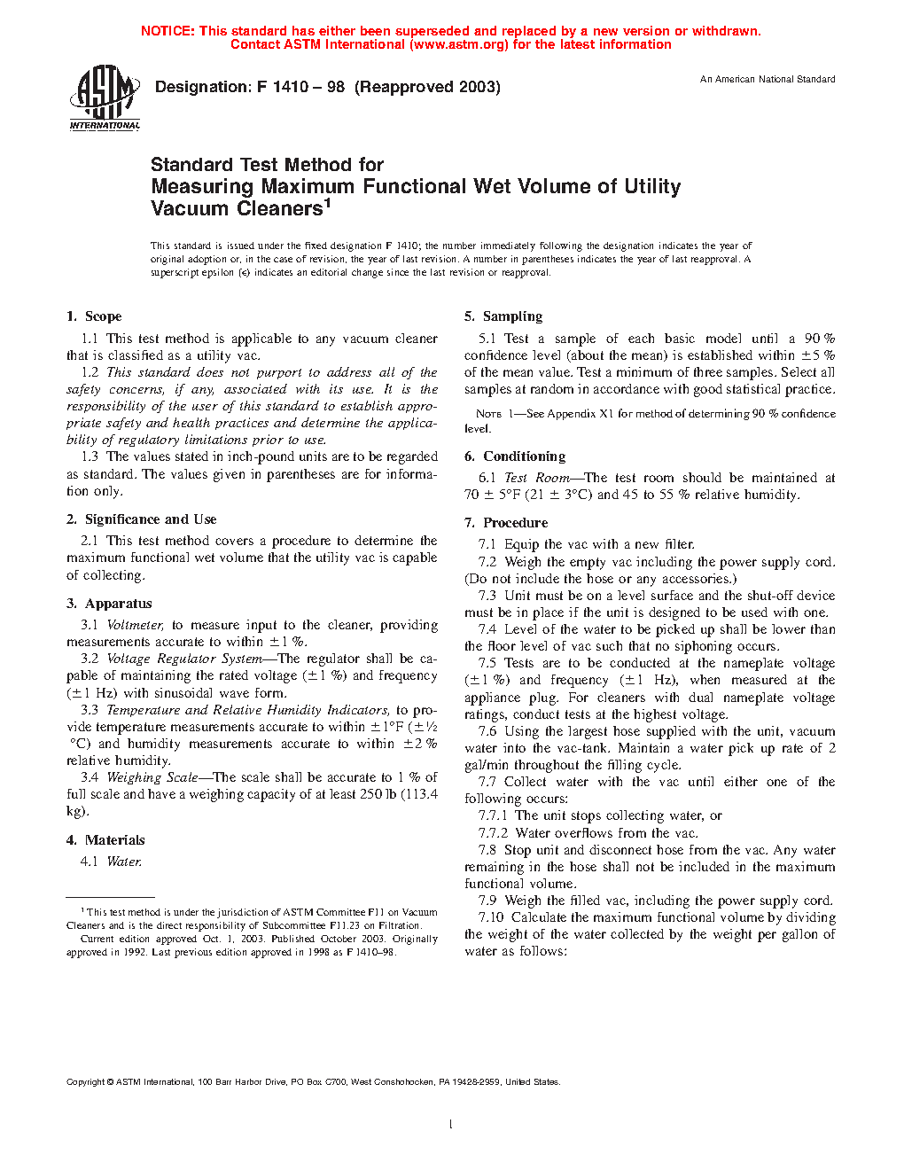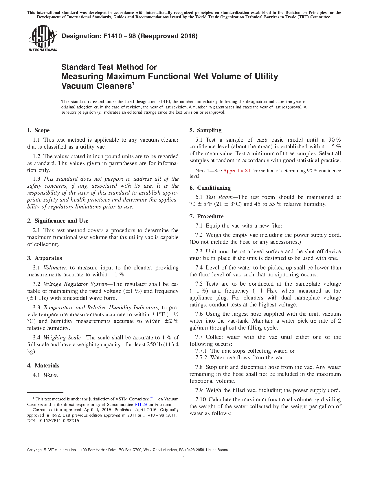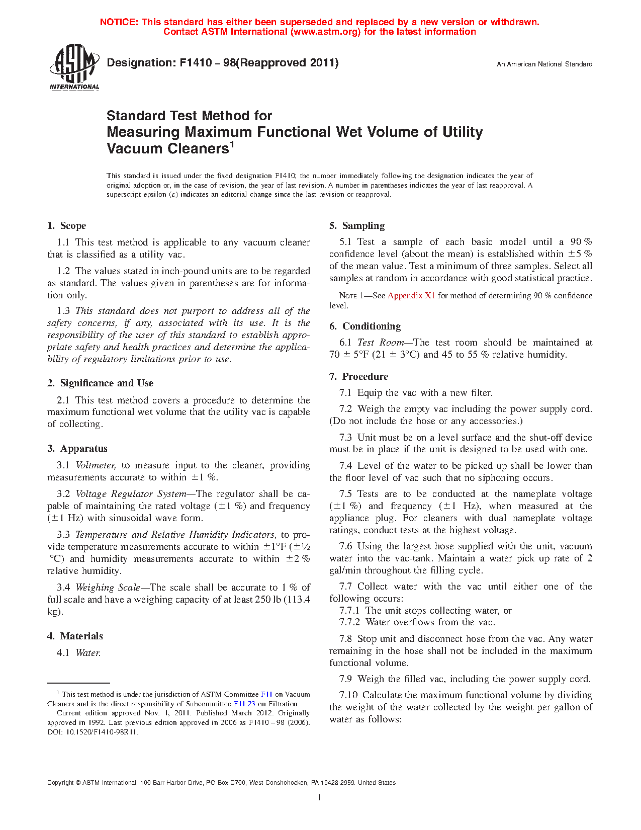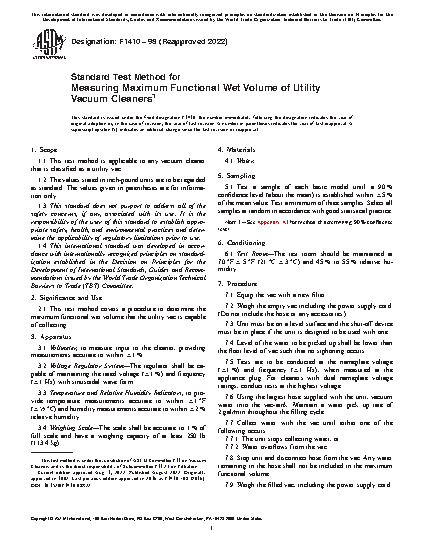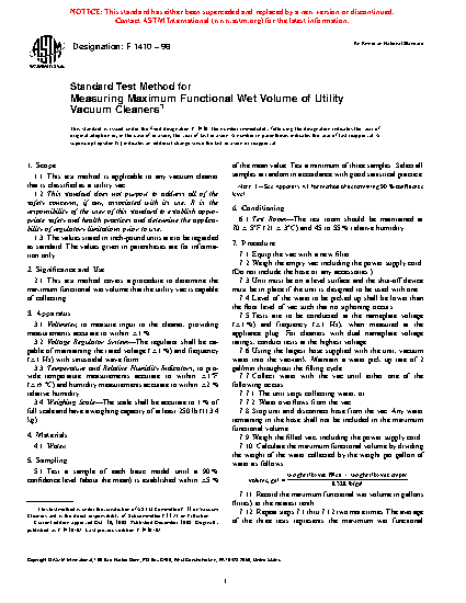 2.1 This test method covers a procedure to determine the maximum functional wet volume that the utility vac is capable of collecting.